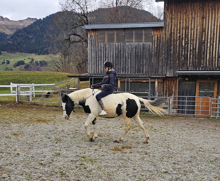 Schweren Herzens verkaufen wir unsere Kessy. Kessy war nun zwei Jahre bei uns. Bei ihrer Vorbesitzerin wurde sie als Therapiepferd eingesetzt und lebte im Offenstall in einer harmonischen Herde. Auch wir wollten sie gerne in unsere bestehende Laufstall-Herde integrieren. Leider hat sich das aufgrund unserer sehr gefestigten Herdenstruktur nicht so entwickelt, wie wir es uns gewünscht hätten. Kessy hat einen freundlichen und sanften Grundcharakter, benötigt aber einen Reiter, der sich klar durchsetzen kann. Bei unsicheren oder unerfahrenen Reitern übernimmt sie sonst gerne selbst die Richtung. Ihre Gänge sind sehr angenehm zu sitzen und bereiten viel Freude. Wir wünschen uns für Kessy einen selbstbewussten, einfühlsamen Menschen, der ihr Sicherheit gibt und ihren Charakter zu schätzen weiß.