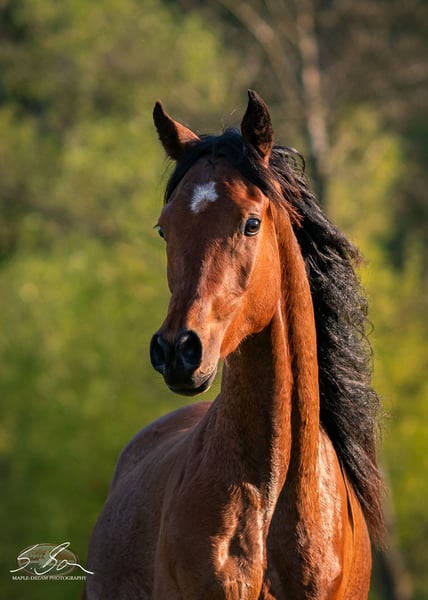 Mahmoud is a purebred Egyptian, energetic, and typy young stallion with a lovable character. He is correctly built with strong, well-angled foundations, a powerful body, and a good topline. His typy head transitions into a well-formed neck with a slight arch, which is well-set on a long, sloping shoulder. He has expansive, elastic movements and a people-oriented, affectionate character. He possesses good nerves and is a "really cool guy." All of this makes him a promising partner for endurance riders and ambitious recreational riders. Both his mother and father are good riding horses. Due to his lineage, excellent conformation, and wonderful character, he is also interesting for breeding. He is free from the genetic defects SCID, CA, and LFS. Mahmoud is familiar with groundwork, farrier work, trailer loading, children, cows, cats, dogs, chickens, large agricultural machinery, and road traffic—essentially, everything a young horse needs to know. He has grown up in a herd and is therefore well-socialized. Upon request, Mahmoud can also be gelded and sold as a gelding. Further upbringing in the stallion herd on-site is possible.