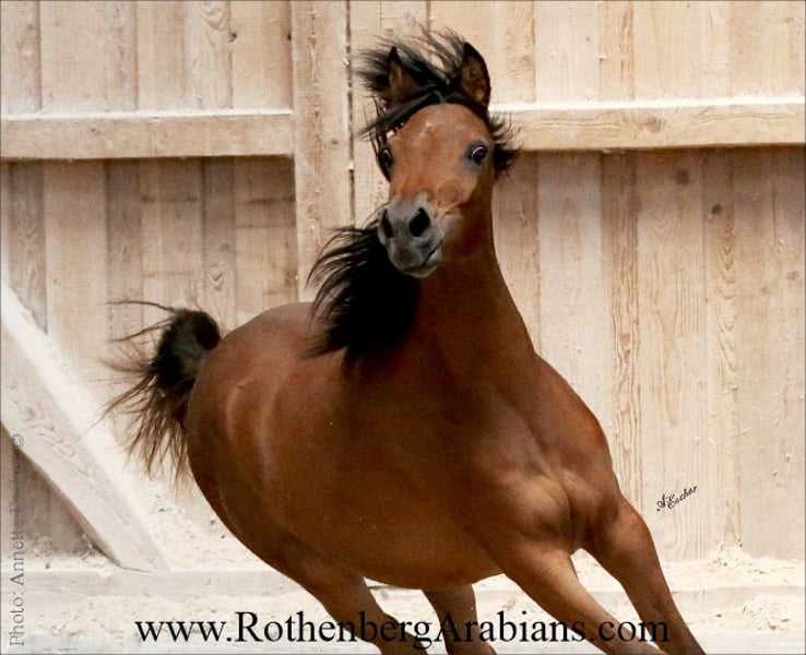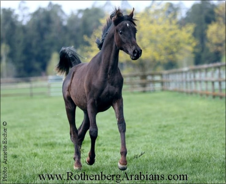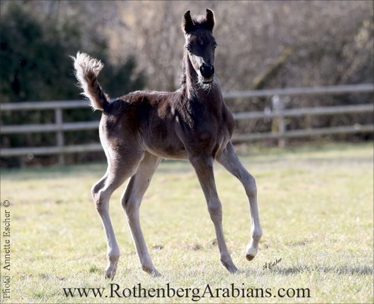 Exotic pretty bay Straight Egyptian yearling filly with black gene for sale! Father is our homebred black stallion GR Madhin (full-brother to our homebred black Champion-mares GR Marietta & GR Marianah; by our black Gold premium foundation stallion Madallan-Madheen), the mother is a daughter of our black Gold premium stallion Maheeb from the same motherline as our “Queen” GR Nashidah! Other exotic typey black, bay & grey Straight Egyptian foals, youngsters and breeding horses for breeding, show and sport for sale! Pearls from worldwide wellknown and successful breeding, famous and proven pedigrees and special people-loving characters! Detailed information, prices and conditions on request, please call at 0049 / 9091 / 3707 or send an e-mail including some information about you - thank you! More information to our breeding-horses and some sale-horses you find at our homepage www.RothenbergArabians.com, other sale-horses (also horses bred and owned by clients) on request! Please also visit us at instagram @RothenbergArabianStud