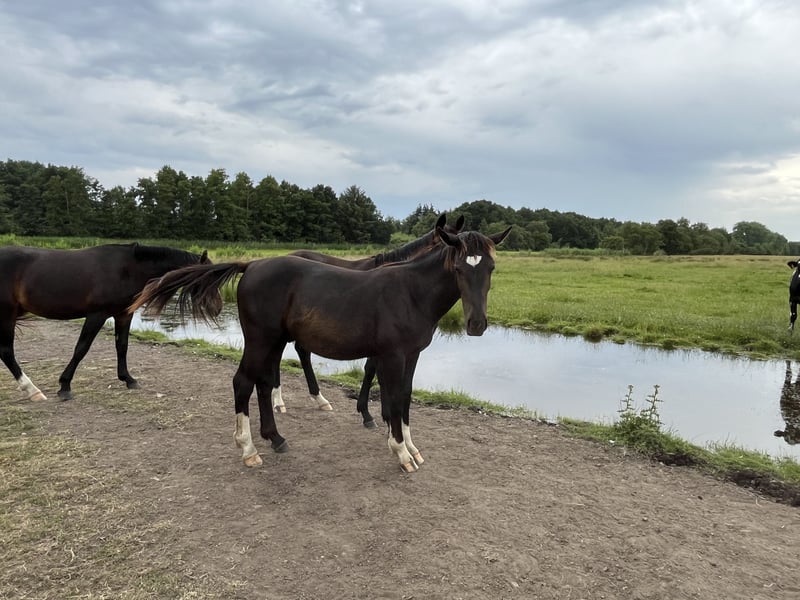 Zum Verkauf steht ein einjähriger, bildschöner Rapphengst mit hervorragendem Pedigree und einem Endmaß von ca. 165 cm. Dieser Nachwuchssportler überzeugt nicht nur durch seine ausdrucksstarken Grundgangarten und sein sportliches Potenzial, sondern vor allem durch seinen außergewöhnlich lieben Charakter. Der junge Hengst ist halfterführig, verladefromm und zeigt sich im täglichen Umgang sehr menschenbezogen, neugierig, offen und in jeder Situation ausgeglichen. Er ist im Herdenverband artgerecht aufgewachsen und bringt ein vorbildliches Sozialverhalten mit – sowohl gegenüber Artgenossen als auch im täglichen Kontakt mit dem Menschen. Eckdaten: • Rasse: Alt-Oldenburger • Farbe: Rappe • Alter: 1 Jahr • Endmaß: ca. 165 cm • Geschlecht: Hengst • Charakter: freundlich, ausgeglichen, lernwillig • Ausbildung: halfterführig, verladefromm • Aufzucht: artgerecht in der gemischten Herde • Ein junger Hengst mit starken Nerven, besten Anlagen für Freizeit, Dressur oder Fahrsport und einer tollen Zukunftsperspektive! Bei ernsthaftem Interesse freuen wir uns über Ihre Kontaktaufnahme. Besichtigung gern nach Terminvereinbarung. 📍 Standort: Dötlingen ☎️ Kontakt: 015228008206 oder info@braaklanderhof.de Wir freuen uns, unseren Rohdiamanten in fördernde und liebevolle Hände abzugeben!