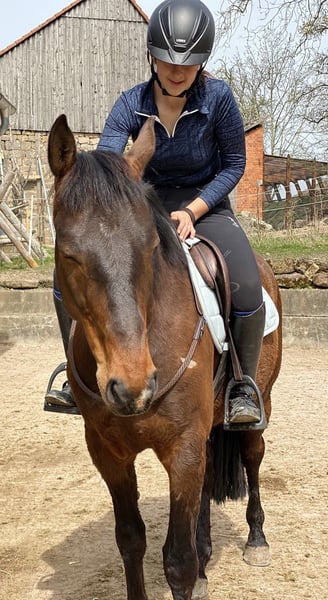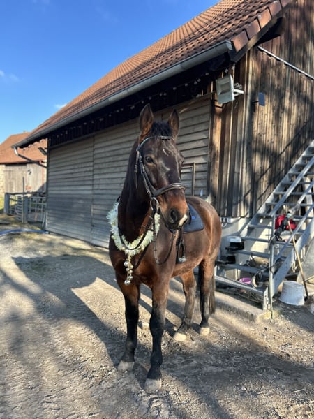 Dieser 7,5-jährige Altwürttemberger Wallach (ca. 159 cm) überzeugt durch sein souveränes Wesen und seine vielseitige Einsetzbarkeit. Er ist geländesicher, unerschrocken und dabei stets brav und zuverlässig. Er bringt erste Turniererfahrungen mit (Springreiterwettbewerbe bis A) und durfte bereits in die Vielseitigkeit reinschnuppern. Dabei zeigt er sich stets motiviert, ehrlich und immer bemüht, seinem Reiter alles recht zu machen. Ob Training, Ausritt oder neue Aufgaben – er macht fast alles mit. Ein idealer Partner für Freizeit- oder Junge Reiter, die ein unkompliziertes, nervenstarkes Pferd suchen, das Spaß macht und für jedes Abenteuer zu haben ist. Anton lebt seit er 3,5 im Herdenverband in einer Offenstallherde, das würde ich mir auch weiterhin für ihn wünschen, da er einfach ein sehr soziales Pferd ist. Keine Reitschulen oder Vereine da er seine Feste Bezugsperson/ Personen braucht.