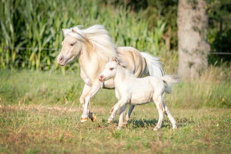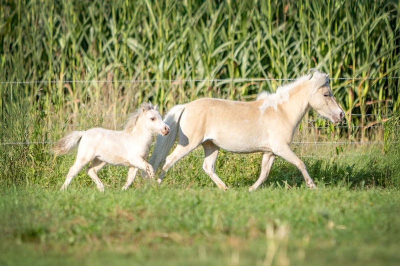 Laureas Golden Cristal Rosalyn Silverdapple Gold Champagne Bont (merrie) Dwerggen vrij via ouders. Stamboek opgenomen met 83 cm. Ze heeft AMHA en NMPRS papier. Ze is drachtig gescand van Rhea Idols Moonlight, Valk Tovero 1ste premie nmprs bmp en amha hengstje van 77 cm Haar veulen van 2025 wat je op de fotos ziet is ook te koop. Champagne creme bonte amha nmprs hengstje momenteel 64 cm schofthoogte. Super lief jaarling hengstje heel mensgericht. Vader Rhea Idols Moonlight Kan ook in 1 koop voor 4500 euro