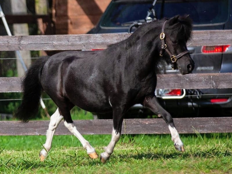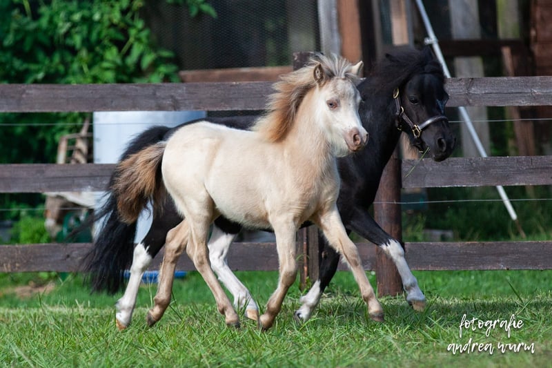 Unser Sternchen ist eine ganz liebe, korrekte und bewegungsstarke AMHA-Stute mit einem Stern auf ihrer Seite aus eigener Zucht! Sie wurde bereits als Fohlen vom ZfdP mit einer 9,0 prämiert und wurde erwachsen als Verbandsprämienstute ins Stutbuch eingetragen. Bislang hatte sie zwei Fohlen, die beide prämiert wurden. Ihr letztes Fohlen aus 2024, eine Champagnerisabellstute wurde mit einer 8,5 prämiert und wird unter Umständen auch verkauft. Sie hatte zwei problemlose Geburten und ist eine tolle Mama. Sternchen ist gesund, wird 6-wöchig dem Huforthopäden vorgestellt und ist selbstverständlich regelmäßig geimpft und entwurmt. Sie hat wie ihre Mutter und Großmutter sehr gute Zähne, was für ein Mini-Pferd leider keine Selbstverständlichkeit ist. Erst 02/26 wurden ihre Zähne von einer Pferdezahnärztin professionell gemacht. Sie steht im Offenstall mit Mini-Gesellschaft und Endmaßponys und ist sehr gut sozialisiert. Sternchen ist mit Kindern aufgewachsen und ist brav im Umgang, leider sind meine Kinder nun zu groß und ich habe aus persönlichen Gründen die Zucht aufgegeben, weswegen sie einfach zu kurz kommt. Die Fotos zeigen Sternchen vom Fohlen bis zum Erwachsenenalter. Abstammung siehe letztes Foto - ein Juwel für die Zucht aber auch einfach nur als Freizeitpartner! Sternchen wird nur in beste Hände verkauft! Weitere Infos auf Anfrage.