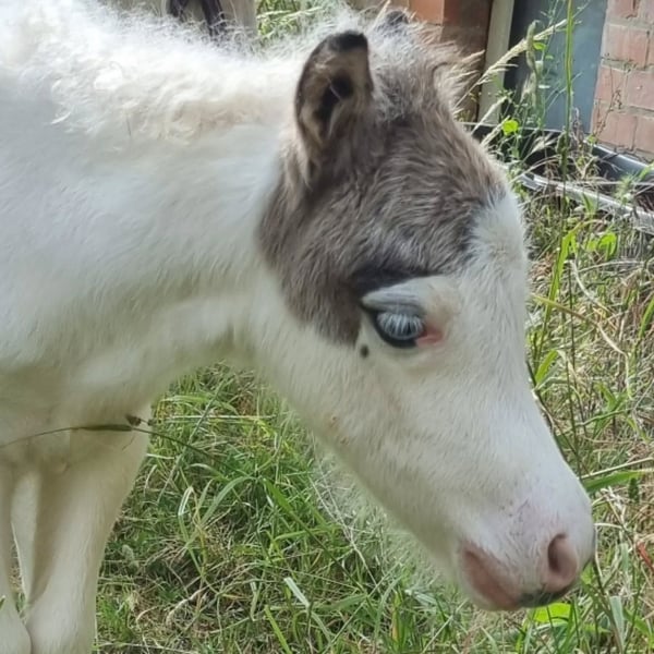 Si tout se passe bien, nous envisagerions de nous séparer de notre jolie Sunna. Sunna est née en juin 2025. Sa mère est Wesersteins Spirit of Maja (photo avant-dernière), et son père est l’étalon importé des États-Unis, Circle S Painted Vegas (dernière photo). Sunna est une jument buckskin tovero avec deux yeux bleus éclatants. La répartition de ses taches doit encore être confirmée par un test de couleur, sa mère portant le gène Tobiano et le gène Splashed White, tandis que son père possède le gène Tobiano et le gène Overo (LWO+). Sunna elle-même est presque entièrement blanche, à l’exception de sa tête mediolateral et d’une petite tache sur le côté. Elle a hérité du gène crème de sa mère et arbore la magnifique couleur buckskin. Une véritable bombe de couleur, et en plus très gaitée, ce qu’elle a également hérité de sa lignée maternelle. N’ayant pas prévu de la garder à l’origine, nous serions prêts à la céder si le bon nouveau propriétaire se présente… Sinon, elle restera avec nous pour le moment. Sur le plan du caractère, elle est très proche des humains et connaît tout ce qu’un poulain de son âge devrait savoir. Plus de photos et vidéos disponibles sur demande.