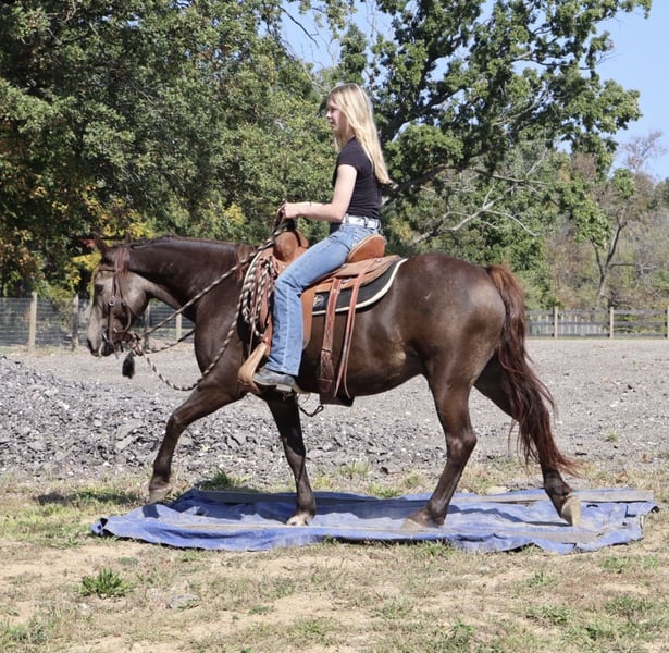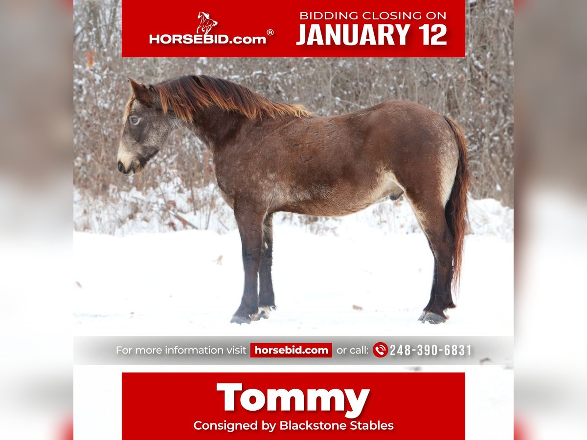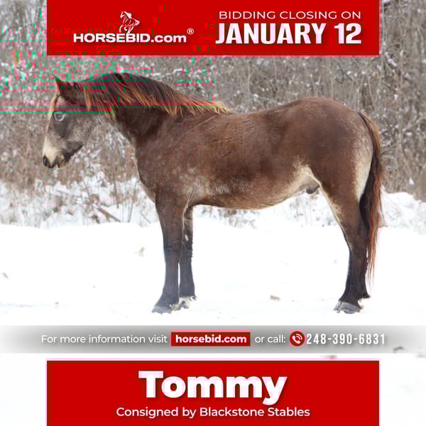 ♦️𝐍𝐄𝐖 𝐘𝐄𝐀𝐑'𝐒 𝑬𝒙𝒕𝒓𝒂𝒗𝒂𝒈𝒂𝒏𝒛𝒂♦️ Happening now thru MONDAY | JANUARY 12th - Available EXCLUSIVELY on HorseBid's website! For more details and to register visit: www.Horsebid.com CONSIGNOR CONTACT: Blackstone Stables 248-390-6831 LOCATION: Howell, MI BREED: Morgan Quarter Horse Cross REGISTERED: No REGISTERED NAME: Tommy COLOR: Sooty Buckskin HEIGHT: 14.1 AGE: 9 GENDER: Gelding Meet Tommy he is a unique sooty buckskin in color. Who wants a person to be his best friend. If you even walk towards his pasture he will trot right up to the gait to greet you and will Follow you around with out a lead rope. Tommy adores attention and stands for all the pampering and attention his people will give him. He's one of the friendliest horses on our farm. Tommy stands 14.1hh at 9 years old. Tommy is a Morgan quarter horse cross gelding. He is very well broke to walk, trot and canter. He stops on a dime with a simple whoa. He takes both leads effortlessly and has a natural flying lead change. Tommy moves off of seat and leg. He has basic reining training such as, a side pass, spin, and a sliding stop. Tommy loves the trails. He will ride thru any woods, the deepest lakes, and open fields. He's also been ridden down the road and is fine with traffic. He's done some basic ranch work and is good around cows. He will gladly ride out alone or in a group. Let him sit a week or 2 hop on and enjoy a laid back ride. He also has arena training and will lope a beautiful circle. Tommy has also been trained to jump and dose so in great form. He has been asked to jump up to 2ft 6 and has room to go higher. Tommy is an amazing all around horse who would excel in EQ team, 4/H, showing or just that all around user friendly family mount! Give Ellesse Schwartz a call or text for more information at 248-390-6831 Tommy lives in Howell MI 48855