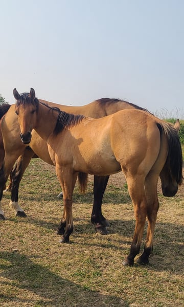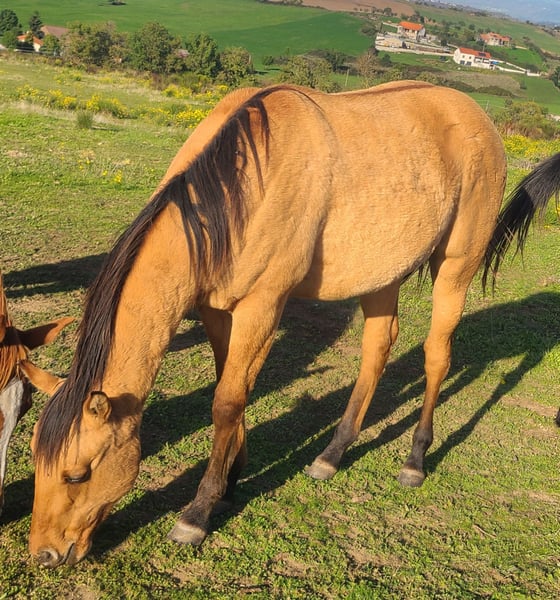 Nous proposons à la vente un magnifique cheval, idéal pour les amateurs ou les cavaliers expérimentés. **Caractéristiques :** - Race : paint horse - Âge : 20 mois - Taille : 142 cm actuellement - Coloration : buckskin - Niveau de dressage : marche en main donne le pieds - Comportement : Calme, doux, sociable - Santé : À jour de ses vaccinations, suivi vétérinaire régulier - Entretien : Facile à entretenir, habitué aux soins quotidiens et aux caresses. Ce cheval possède une excellente éducation, Il est adapté aussi bien pour la randonnée que l’équitation de loisir où western. N'hésitez pas à me contacter pour plus d’informations ou pour organiser une visite. ---