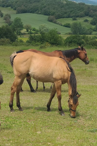 Wir bieten ein wunderschönes Pferd zum Verkauf an, ideal für Hobbyreiter oder erfahrene Reiter. **Merkmale:** - Rasse: Paint Horse - Alter: 20 Monate - Größe: aktuell 142 cm - Farbe: Buckskin - Dressurniveau: Führigkeit, geht an die Hand, zeigt Hufe - Verhalten: Ruhig, sanft, sozial - Gesundheit: Aktuell geimpft, regelmäßige tierärztliche Betreuung - Pflege: Pflegeleicht, an tägliche Pflege und Streicheleinheiten gewöhnt Dieses Pferd verfügt über eine ausgezeichnete Ausbildung und ist sowohl für Wanderritte als auch für Freizeitreiten oder Westernreiten geeignet. Zögern Sie nicht, mich für weitere Informationen oder eine Besichtigung zu kontaktieren.