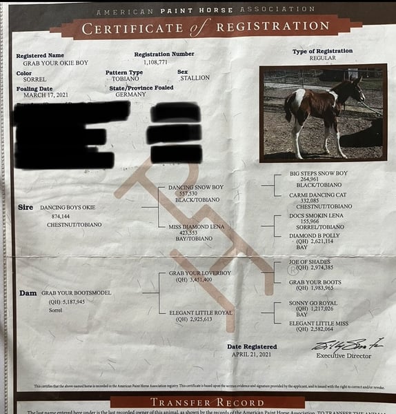 ¡¡¡El precio es completamente negociable!!! ¡Primero la plaza, luego el precio!!! Nuestro pequeño Henry busca un nuevo hogar de 5 estrellas. Henry nació a finales de abril de 2025. Su madre es la yegua de raza Quarter Horse „Razalena Blaze“ (abuelo Jac O Rima, bisabuelo Hollywood Jac 86) y su padre es el semental de Paint Horse „Grab Your Okie Boy“, un hijo directo de Dancing Boys Okie… El pequeño recibirá papeles APHA (en trámite), un pasaporte PHCG y, por parte de los padres, tiene todos los efectos genéticos n/n. Sin embargo, se realizará igualmente una prueba de panel. Actualmente, crece en un grupo de manada con caballos mayores y jóvenes en paddock libre, por lo que está bien socializado. Podrá irse a su nuevo hogar a partir de finales de octubre. Henry ha sido desparasitato regularmente, está vacunado contra el tétanos en el momento de la entrega y ha sido presentado regularmente al herrador. El pequeño está en su casa en 94424 Arnstorf.