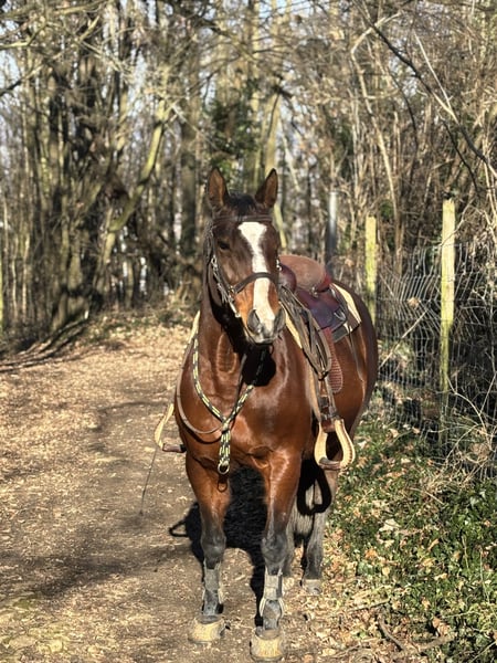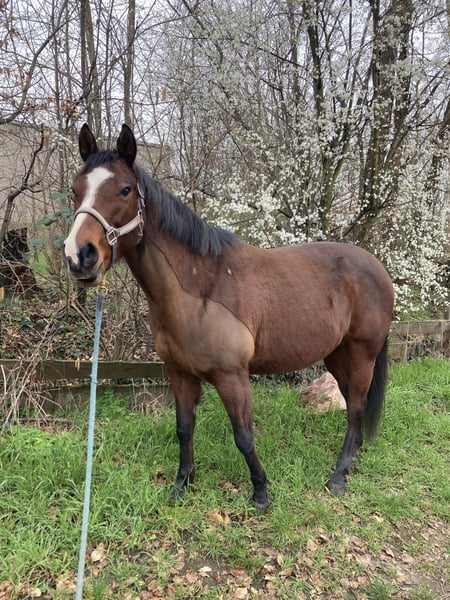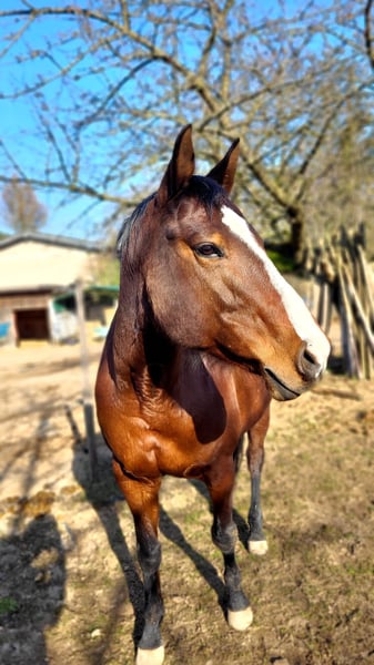 With a heavy heart and after careful consideration, I unfortunately have to sell my 10-year-old solid-colored Paint Horse mare "TCF Dela Zipp Peaches," short "Peaches," due to lack of time. She has unfortunately been absolutely underutilized for some time now and is therefore not in training. Her father is Deladraw Kenny and her mother is Zipps Missy. Pedigree is included in the pictures. About Peaches: Height approximately 152/153 cm. I have had her since she was 4 years old. I bought her untrained back then. I have started her myself with support. She has had a hay dust intolerance for 3 years. At least she coughs as soon as she eats dry hay. However, this is not noticeable when the hay is properly soaked or steamed. An inhaler is also available if interested and can be purchased for an additional fee. Peaches is ridden Western for leisure and can accommodate riders weighing 70, at most 75 kg, and a height of 170 cm due to her build and size. She has grown up in a free stall system. She has lived in a paddock box, a short time in a stall, and in a free stall with me. She has always been outside during the day. She does not know pure box housing or only a few hours outside, and I do not want that for her. If you are seriously interested, please send a message or call and leave a short message on the voicemail with your name and phone number. I will get back to you as soon as possible. 0152-22953125 Home before price.