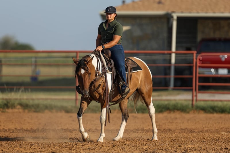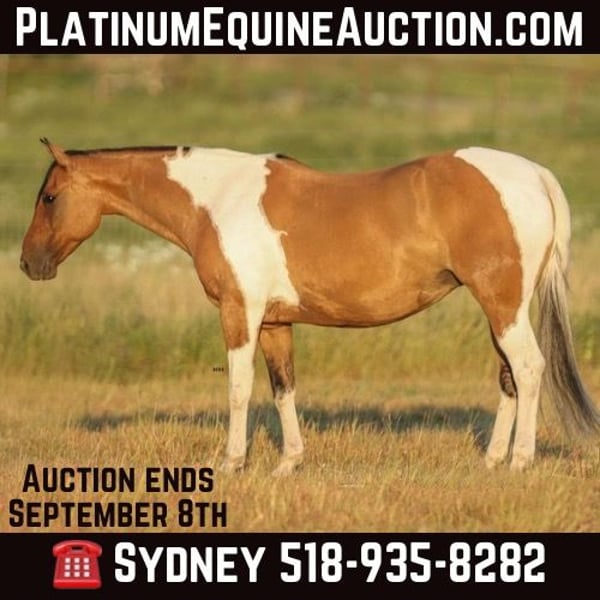 ONLINE AUCTION Place your bids at www.PlatinumEquineAuction.com Starting Bid $3500 Auction ends September 8th, 2024 Need a new saddle? Check out White Rock Saddles on our website or Facebook! Dutchess or “Peggys Gone N Dun It” is a 2014 model Dun Registered Paint Mare. Standing at 15H this mare is strong and stout. Dutchess got her name from her almost regal presence. She has a dignified, reserved personality and remains unbothered by her surroundings. She has proven to me time and time again that she is consistent and does all things in a disciplined, distinguished manner. Her personality isn’t the only thing to brag about though. She has a big kind eye that shows how kind and honest she is. She has nice legs and confirmation suitable for many disciplines. Her color is something extraordinary as well as a Dun Paint she has some striping on her legs and a very prominent dorsal stripe on her back. Dutchess also rides wonderfully. She will walk, trot, lope on a loose rein. She has a very nice stop and has slow correct spins in both directions. She is very soft in your hands and moves off your leg nicely. She will neck rein nicely or you can ride two handed if you prefer. You can move any part of her with your legs and she side passes from a woah, walk, and trot. Dutchess is not spooky and will go almost anywhere you tell her. She rides nicely on trails, the arena, or even traffic. She loads and unloads from the trailer very nicely without any hesitation. She stands nicely at the barn or the trailer to be groomed, saddled, and bathed. Dutchess does very well by herself or in a group and does not act marish around other mares or geldings. Dutchess has recently been seen by my dentist, farrier, and chiropractor and was an excellent citizen for all. She is what I call a “yes ma’am” type of horse. I ask for something and there doesn’t have to be a conversation about it she just says “yes ma’am”! She has been an amazing horse to have in my barn and a true joy to be around. For more questions or information please contact Sydney with SRS Training and Sales at (518) 935-8282. Dutchess is located in Granbury, TX and I’m happy to help arrange shipping anywhere in the US . ONLINE AUCTION Place your bids at www.PlatinumEquineAuction.com Starting Bid $3500 Auction ends September 8th, 2024 Need a new saddle? Check out White Rock Saddles on our website or Facebook!