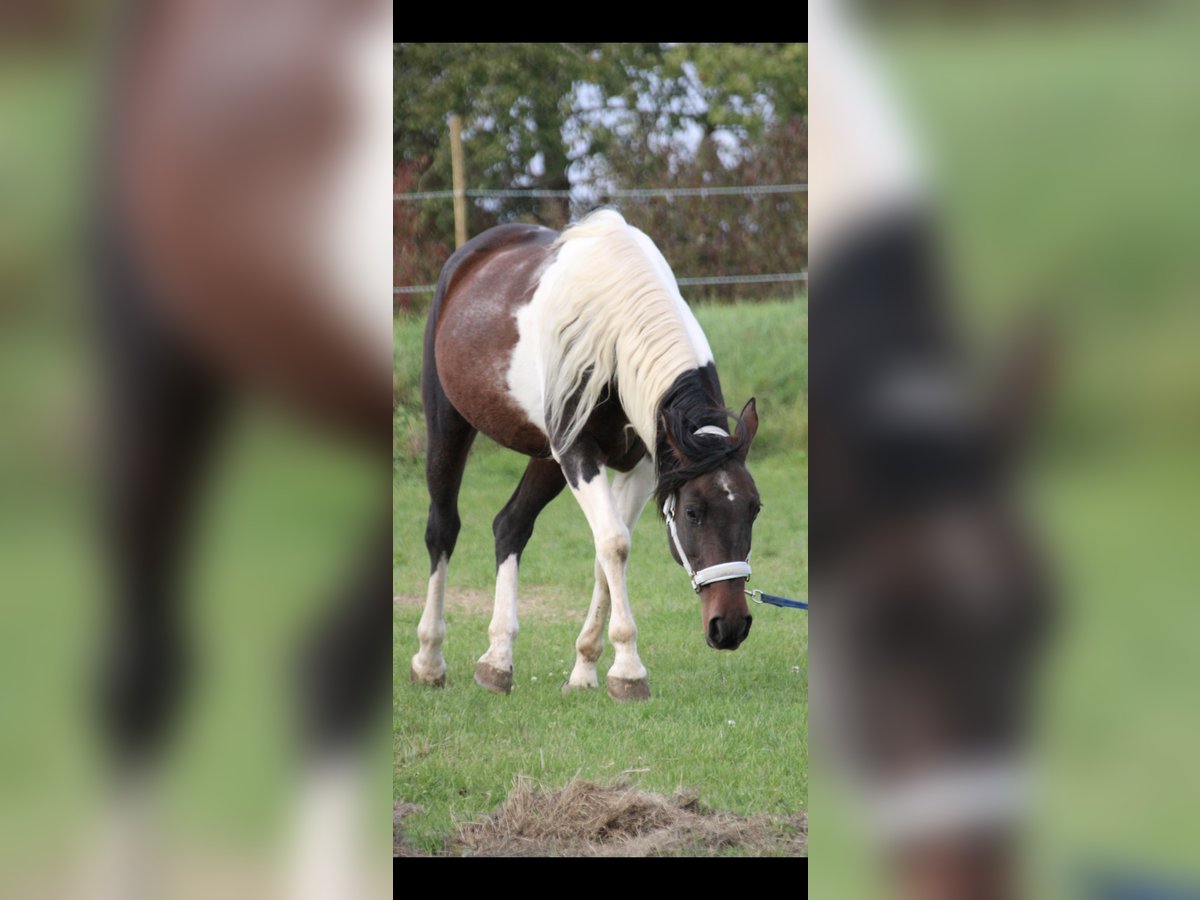 Hübsche Paint-Araber Stute – Charakterpferd mit Herz und Temperament Ich verkaufe meine wunderschöne, 14-jährige Stute (Vater: Paint Horse, Mutter: Araber). Sie ist ca. 1,53 m groß und eine auffällige Braunschecke. Charakter & Haltung: Sie ist kein Anfängerpferd – braucht einen erfahrenen Reiter mit ruhiger, konsequenter Hand. Menschen gegenüber ist sie sehr lieb und brav, beim Hufschmied und Tierarzt absolut unkompliziert. In der Herde zeigt sie sich eher dominant und bevorzugt daher Einzelhaltung mit Paddock oder einen passenden Partner, den sie akzeptiert. Reiten & Temperament: Sie vereint das Beste aus beiden Rassen – kann ganz entspannt wie ein Paint, zeigt aber auch den arabischen Temperamentfunken, besonders im Gelände. In der Halle arbeitet sie schön mit und lässt sich gut reiten. Gesundheit & Pflege: PSSM1-Trägerin, aber mit richtiger Fütterung und ausreichend Bewegung keine Probleme Gechipt, regelmäßig entwurmt, geimpft, sowie beim Zahnarzt und Hufschmied immer brav Equidenpass und Besitzurkunde vorhanden Sonstiges: Kein Notverkauf – sie wird nur in wirklich passende, liebevolle Hände abgegeben. Probereiten ist nach Absprache möglich (30 € Gebühr, wird beim Kauf angerechnet). Bei ernsthaftem Interesse gerne telefonisch melden: 0157-76041946