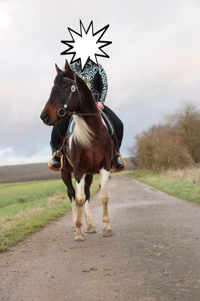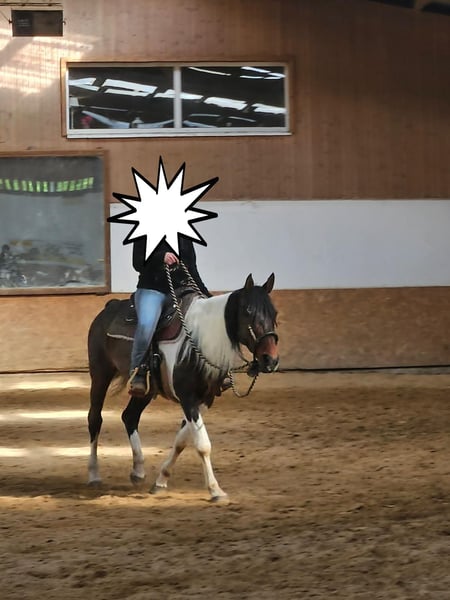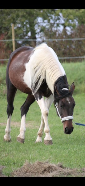 For sale: my 14-year-old mare, father Paint Horse, mother Arabian. Height: 1.53m Brown and white spotted. Not a beginner's horse! PSSM 1, but with the right feeding (grain-free) and exercise, she has no problems. She is more of a stable horse with a paddock as she is quite dominant and unsocial unless she finds her right partner. Microchipped. Regularly dewormed, vaccinated, and has had farrier and dentist care. She can be the cool Paint but also the hot-blooded Arabian. Not a forced sale; she will only be sold if it’s a good match. Can be ridden beforehand or trial ridden. To avoid riding tourism, I charge a fee of €30, which will of course be deducted from the purchase price.