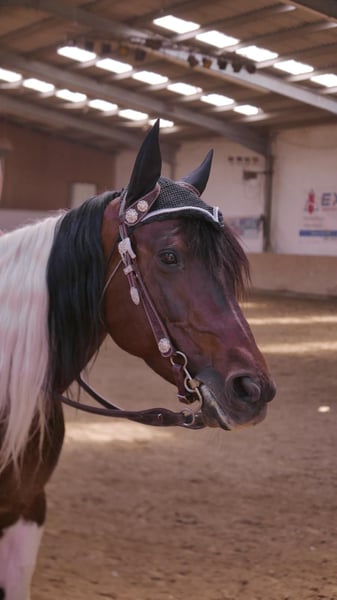 Vends ma belle jument de 14 ans, père Paint Horse, mère Arabe. Taille : 1,53 m Baie tobiano Ce n'est pas une monture pour débutants ! PSSM1, mais sans problème avec une alimentation adaptée et de l'exercice régulier. Elle est plutôt une jument de boxe avec paddock, car assez dominante et peu sociable, sauf si elle trouve le bon compagnon équin. Avec l'humain, elle est très affectueuse. Pucée, régulièrement vermifugée, vaccinée, avec ferrure et soins dentaires effectués. Très calme lors de la ferrure et chez le vétérinaire. Elle peut être la paint cool ou le pur sang arabe fougueux. En manège, elle se laisse bien monter, en extérieur, elle a du tempérament. Elle possède un passeport européen et un certificat de propriété. Ce n’est pas une vente d’urgence, elle sera vendue uniquement si le bon accord est trouvé. Peut être essayée en selle ou testée lors d’une balade. Pour éviter les visites non sérieuses, je facture 30 €, qui seront déduits en cas d’achat.
