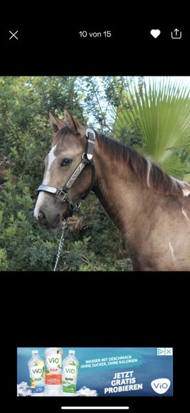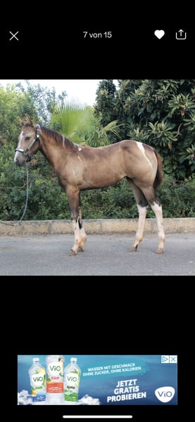 AM POCO MAGIC LUCY Lucy ist eine wunderschöne Buckskin Tobiano Stute. Momentanes Stockmass ca. 1,54m Vater: Magic on ICE Mutter: Betsy Poco Twist (Eltern letztes Bild) Sie hat Papiere bei der APHA. Lucy ist über ihre Eltern 5 Panel n/n und bei UC Davis Imm n/n getestet. Dazu der Farbtest E/e A/a Cr/n To/n. Foundationblutanteil 84 %. Evtl. auch ist interessant für die Zucht Paint Horse Stute, 2,5 Jahre – talentiert, charakterstark, in Ausbildung Wir verkaufen unsere zweieinhalbjährige Paint-Stute Lucy. Lucy wird voraussichtlich kein typisches Anfängerpferd, sondern ein Pferd für ambitionierte Reiter, die Freude daran haben, ihr Potenzial weiter zu fördern. Sie ist brav im Umgang und gleichzeitig selbstbewusst. Lucy hat in der Bodenarbeit bereits deutliche Fortschritte gemacht und akzeptiert den Sattel schon gut. Aktuell wird sie im Trainingsstall behutsam weiter auf den Beritt vorbereitet. Sie ist geimpft, gechippt, regelmäßig entwurmt, kennt den Schmied und ist gut sozialisiert. Lucy ist eine aufgeweckte, lernfreudige junge Stute, die mit der richtigen Führung ein tolles Pferd für Sport oder ambitionierte Freizeitreiter werden kann. Bei Interesse freuen wir uns über eine Nachricht.