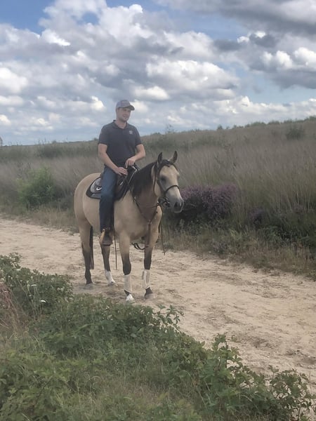AS Wimpys First Doll (Charlie) Pedigree: Wimpys Little Colonel × The Great Guntini Year of birth: 2021 Color: Buckskin 5-panel: N/N In foal to: GP A Spook in Town – due mid April 2026 Due to private circumstances of the owner, we have sadly decided to offer this sweet mare Charlie for sale. Charlie was born with us, so her full history is known. Charlie is an honest and pleasant mare to handle. She has always been well maintained: correctly vaccinated, dewormed, trimmed, and recently checked by the dentist. Under saddle she is easy to ride, both in the arena and outside on trails. She has been ridden basic western. We are expecting her foal by GP A Spook in Town in mid April 2026; she conceived on the first attempt. Due to her pregnancy, Charlie has not been ridden for the past two months. Last year, Charlie already produced a beautiful foal by Smart N Sparkin. She is a good and easy mother, also very uncomplicated to handle with a foal at her side. Small remark on the X-ray, without clinical relevance. Charlie will only be sold to a good and suitable home. For more information, please contact +31 6 30915229.