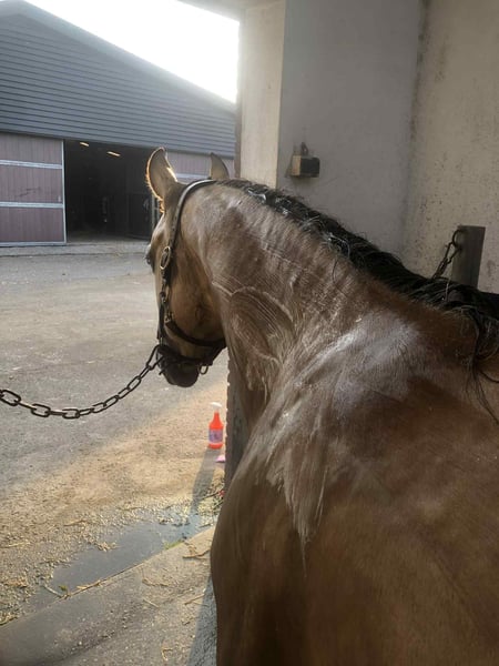 AS Wimpys First Doll (Charlie) Pedigree : Wimpys Little Colonel × The Great Guntini Année de naissance : 2021 Couleur : Isabelle Test 5-panel : N/N Enceinte de : GP A Spook in Town – prévue pour mi-avril 2026 En raison de circonstances personnelles de la propriétaire, nous avons malheureusement décidé de mettre cette douce jument, Charlie, en vente. Charlie est née chez nous, son historique complet est donc connu. Charlie est une jument sincère et agréable à manipuler. Elle a toujours été bien entretenue : correctement vaccinée, vermifugée, parée, et récemment examinée par le dentiste. En selle, elle est facile à monter, aussi bien en manège qu’en extérieur lors de balades. Elle a été monté en équitation western de base. Nous attendons son poulain par GP A Spook in Town à la mi-avril 2026 ; elle est tombée enceinte dès la première tentative. En raison de sa grossesse, Charlie n’a pas été montée ces deux derniers mois. L’année dernière, Charlie a déjà donné naissance à un magnifique poulain par Smart N Sparkin. C’est une mère douce et facile, également très simple à manipuler avec un poulain à ses côtés. Petite remarque concernant la radiographie, sans aucune importance clinique. Charlie sera vendue uniquement à une famille sérieuse et adaptée. Pour plus d’informations, veuillez contacter le +31 6 30915229.