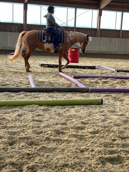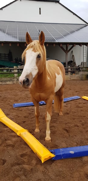 With a heavy heart, I must sell my Paint Horse mare, IceTea. I am unable to do her justice, as I have physical limitations myself. She is too challenging for me and, in the long run, too exhausting. Unfortunately, I also lack the time and the skills to handle her independently over an extended period. Since February, she has been in professional training and has made tremendous progress. I have to admit that I am not the person who can truly meet her needs. Although it is very difficult for me to sell her, as I have grown deeply attached and have tried everything to do right by her. She is a very sweet and well-behaved, yet strong-willed mare, with beautiful gaits that she is very responsive to riding. IceTea is currently still in full training and under professional instruction. Due to a diagnosis of kissing spines, which was treated in January 2025, she is being sold as a leisure horse. According to the clinic, she can also compete in competitions, but not at a professional level. Since February, she has been in training five days a week and has developed exceptionally well! She is physically stable and, despite the intensive training, shows no setbacks. However, she remains a sensitive, responsive horse, and one must always be attentive. She has a good temperament, always wants to please, and, with proper handling, is very eager to satisfy her rider. She is very sensitive and trusting. She should only be ridden by experienced riders who are willing to keep her physically fit and support her three to five days a week. No other illnesses or allergies are known. She is barefoot. Please feel free to contact me for more information!
