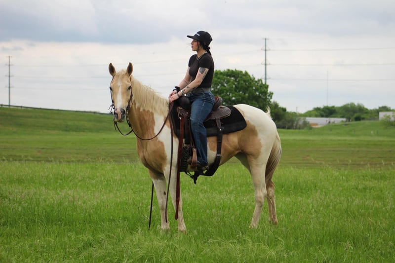 "AVAILABLE ON ONLINE HORSE AUCTION AT www DOT PlatinumEquineAuction DOT com BIDDING OPEN NOW thru SUNDAY | MAY 3RD! *Final price will be determined on auction site* CONSIGNOR CONTACT INFO: MW Horses 254-434-8650 LOCATION: Poolville, TX Jolene is 9 years old palomino paint mare. She stands 14.3 hands tall! She is super fun mare that you can take down the trail with your friends and enjoy! Jolene neck reins good and has a good stop. She will cross water, bridges, logs, and anywhere else you wanna point her to do. W/t/l easy in the arena or outside. She’s been many miles on trails all over. Jolene is great in town. The traffic doesn’t phase her and ready for any adventure you have for her. She is a nice mare looking for a lifelong friend. Jolene can have alittle go under her but if you ask her to stop she listens great. Jolene is looking a dependable rider that likes to ride in groups! Come see Jolene for yourself or we can schedule a FaceTime to meet her! Call or text Makayla with MW Horses at 254-434-8650. Need hauling? We got a list of reliable haulers around the US!