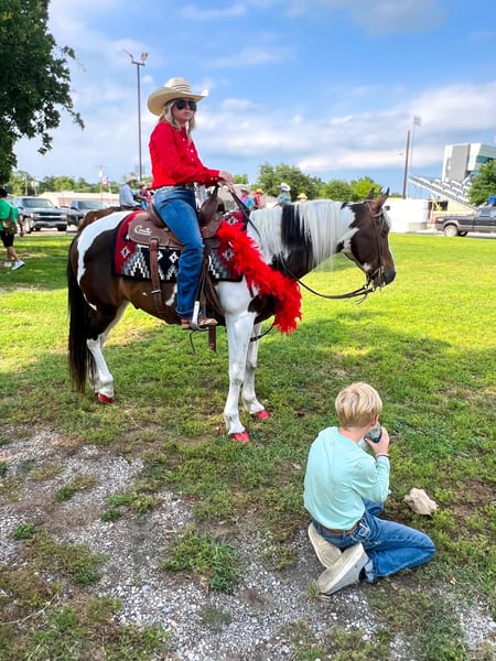 ONLINE AUCTION Place your bids at www.PlatinumEquineAuction.com Starting Bid $3500 Auction ends June 23rd, 2024 Need a new saddle? Check out White Rock Saddles on our website or Facebook! Meet Picasso, a picture perfect 9-year-old paint gelding who is sure to paint your life with color! Picasso is the ideal family horse with a calm, friendly nature that makes him a pleasure to handle and ride. He is well versed in a variety of settings: trails, traffic, parades, 4H shows, and camping trips. Having spent countless hours on the trails, Picasso is a seasoned pro. He’s traveled to more than his fair share of state parks and down local trail heads. Whether you’re meandering through backwood paths, crossing streams, or navigating open fields, he handles every situation with ease. He’s been a reliable companion on overnight camping trips, confidently navigating rocky terrain, and quietly tackles even the most hectic traffic commotion. Picasso has been used as a part of the mounted sheriff’s posse and was even on the search & rescue team. However, his experience extends beyond the trails. He has proudly participated in numerous parades, making him accustomed to crowds, loud noises, and unexpected distractions. Sirens, Marching bands, cattle – you name it. Safety is paramount, especially when it comes to young or inexperienced riders. He is great with flags, tarps, ATV’s and farm equipment. One of my favorite things about Picasso is that you can stand on the fence or a mounting block, snap your fingers and he will side pass on over for you to hop on with ease. Picasso’s trustworthy nature and easy going demeanor ensure he is a safe mount for kids and novice riders. His sure-footedness and reliability make him a trusted trail partner, while his training and experience in various settings showcase his adaptability. You can unload and ride him anywhere and everywhere! Whether it’s a leisurely trail ride, cruising through the drive through, entering a trail course class, a parade, or simply spending quality time grooming and bonding, Picasso excels in all aspects. Picasso is super gentle on the ground and fantastic around kids, making him a wonderful choice for families. He is very friendly and gets along great with other horses or other livestock/dogs. He stands quiet to be groomed, bathed, saddled, mounted/dismounted, etc. Loads and hauls great! Picasso stands 14.2 hands, is sound & healthy, and up to date on all care (records available upon request). With his eye-catching coat and well-defined markings, Picasso is a true work of art. He has been well-maintained and he reflects the care and love he has received over the years. You’ll be proud to have him, turning heads wherever you go! I’ve never received more compliments on a horse than I have with Picasso. Picasso is located in Stephenville, Texas – we can help arrange transport to any location. Contact C Fork Horses – Cheyenne 480-907-8516 with any questions, we would love to chat with you! ONLINE AUCTION Place your bids at www.PlatinumEquineAuction.com Starting Bid $3500 Auction ends June 23rd, 2024 Need a new saddle? Check out White Rock Saddles on our website or Facebook!