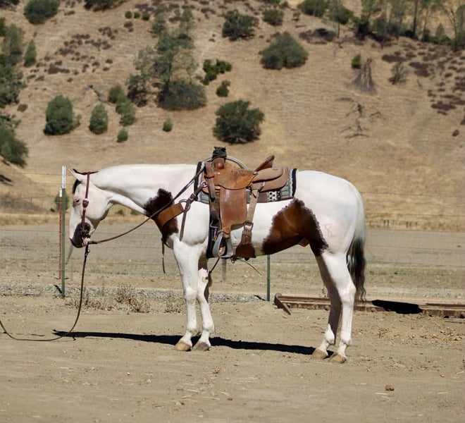 ONLINE AUCTION Place your bids at www.PlatinumEquineAuction.com Starting Bid $3500 Auction ends August 24th, 2025 Need a new saddle? Check out White Rock Saddles on our website or Facebook Aye Aye Pirate – The Treasure You’ve Been Hunting For! Drop anchor—your dream horse just surfaced. Meet Aye Aye Pirate, or just Pirate to his crew—a 10-year-old, 14.3-hand paint gelding with the kind of ride, temperament, and good looks that make him a rare treasure. Pirate is truly one of the gentlest, most dependable horses we’ve had the pleasure of offering. He’s kind, patient, and incredibly forgiving—making him an ideal choice for riders of all levels. Whether you’re brand new to horses, getting back in the saddle after years away, or just want a steady mount you can trust in any setting, Pirate will take care of you every step of the way. On the trail, he’s as solid as they come. He’s confident, sure-footed, and careful without being sluggish. He’ll navigate water crossings, rocky terrain, steep hills, narrow bridges, downed trees, tarps, tires, and pool noodles like a seasoned scout. And he does it all without hesitation or drama—ears forward, eyes soft, and completely tuned in to his rider. Pirate doesn’t just tolerate the trail—he thrives on it. He’s also a total dream to ride down the road. Cars, trucks, barking dogs, bicycles, strollers—you name it—he’s seen it and walked right on by with a quiet confidence that’s hard to find. He’ll go out alone or in a group and never loses his cool. In the arena, Pirate keeps things simple and fun. He lopes off soft, neck reins easily, stops off your seat, and moves right off your leg. He’s smooth, correct, and easy to ride—even for beginners—but he’s broke enough to keep seasoned riders smiling. Need a little style? He’ll roll into a smooth spin that’ll make you grin. He’s been used on the ranch too—gathering cattle, opening gates, branding and roping. But what truly makes Pirate special is his heart. He’s got that rare “babysitter” brain paired with enough buttons to still be enjoyable for a confident rider. He’s sweet without being dull, willing without being pushy, and always ready to meet you at the gate. In the barn, he’s just as easy. Catches without a chase, saddles and bridles without a fuss, great for the farrier, and loads and hauls like a seasoned traveler. Stall or pasture, alone or with others—he’s happy wherever you put him. So if you’ve been searching for that once-in-a-lifetime gelding—the one you can trust with your kids, your grandma, your cowboy friend, or just yourself on a solo sunset ride—Pirate is the one you’ve been waiting for. Located in Paicines, CA 📞 Call or text Dina at Longhorn Ranch – 831-537-1915. ONLINE AUCTION Place your bids at www.PlatinumEquineAuction.com Starting Bid $3500 Auction ends August 24th, 2025 Need a new saddle? Check out White Rock Saddles on our website or Facebook