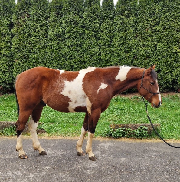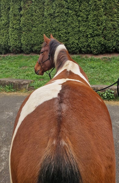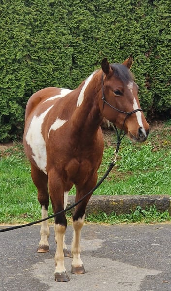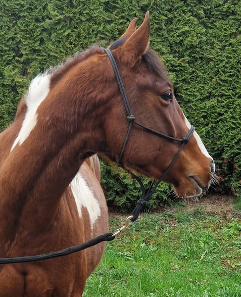 SW MONTY MAGIC MOON – Paint Horse Wallach (3 Jahre) Zum Verkauf steht ein hübscher 3-jähriger Paint Horse Wallach solider Abstammung. Er ist seit 3 Monaten im Profi-Beritt. Unter dem Reiter zeigt er sich brav und unkompliziert und beherrscht alle drei Grundgangarten (Schritt, Trab und Galopp). Der Wallach überzeugt durch sein freundliches Wesen, seine Lernbereitschaft und sein angenehmes Temperament. Monty bringt eine solide Basis mit und kann nun individuell weiter gefördert werden. Durch seine unerschrockene Art wird er sicher ein guter Partner im Gelände oder auch für die Disziplin Ranch Riding. Abstammung: Vater: Apache Moon Power Mutter: Magic Marylin Er ist gesund, regelmäßig entwurmt, beim Schmied und dem Alter entsprechend entwickelt. Leider ist er PSSM Träger und wird daher günstiger abgegeben. Er kennt Offenstallhaltung. Bei Interesse oder für weitere Informationen gerne melden!