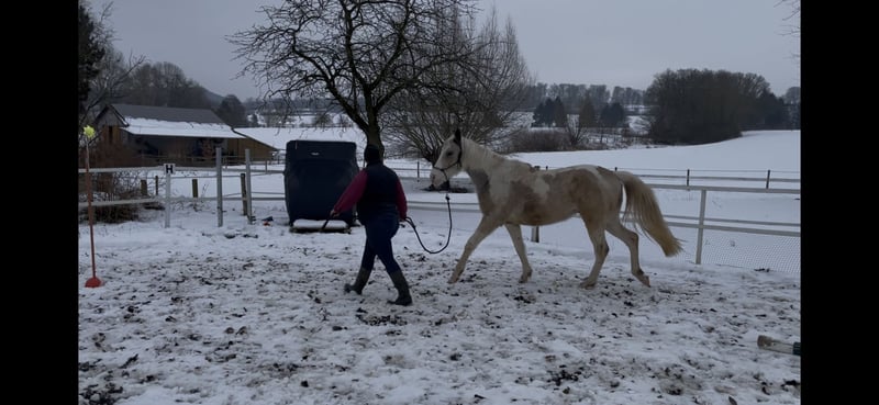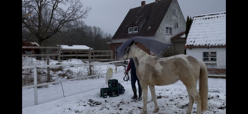 Im Auftrag: Bacardi ist ein junger, charmanter Paint-Mix Wallach, der mit seinem freundlichen Wesen und seiner Lernbereitschaft begeistert. Er ist sehr menschenbezogen und sucht aktiv den Kontakt und die Aufmerksamkeit. Bacardi kennt Trecker, Autos, Hunde, Hühner und Kinder – kein Problem für ihn! Er wurde immer regelmäßig beim Hufschmied vorgestellt und hat keine gesundheitlichen Einschränkungen. Bacardi braucht einen erfahrenen Pferdemenschen mit Jungpferdeerfahrung, der ihm geduldig Sicherheit und eine klare Führung gibt und sein Vertrauen gewinnt. Er ist kein Anfängerpferd, aber wer bereit ist, in seine Ausbildung zu investieren, wird mit einem loyalen und vielseitigen Partner belohnt. Ich wünsche mir für ihn eine Offenstallhaltung oder eine Haltung mit täglichem Auslauf und Artgenossen. Händler und Schulbetriebe kommen nicht in Frage. Gerne kannst du Bacardi kennenlernen und dich selber von ihm überzeugen lassen. Er wird einzig und allein aus Zeitmangel meinerseits abgegeben und freut sich deshalb auf eine neue Aufgabe bei seinem Menschen!
