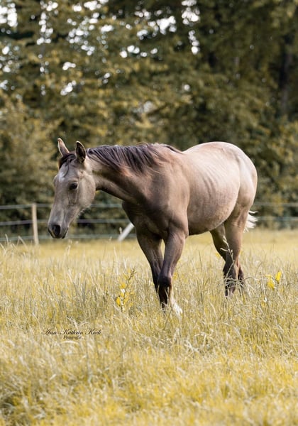 Wegen Zuchtaufgabe Charismatischer 2 jähriger sooty buckskin Quarter Hengst mit toller Abstammung. Brav im Handling Sehr schöner Beweger. EWU Jungpferde eingezahlt Wächst in Junghengstherde auf