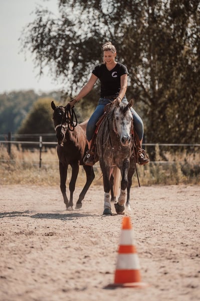 AR Jack Sparrow is a great natural mover who is very talented on all maneuvers. In addition, he has a correct fundament. His disposition is cool and he has a very easy mind. For your next Reining, Cutting or Ranch Riding prospect, he will be the right pick for your mare. He has the looks, the moves and a heart of gold! Genetics: 5 panel NN, MYHM/N Color: OLW NN, Aa, ee, Cr/N, ndl/ndl Discipline: Reining, Cutting, Ranch Riding Available semen: Frozen Live foal guarantee (LFG): Yes Color: Gray Sparrow wurde in Italien gezüchtet und ist seit 2021 bei mir zu Hause. Er wurde Reining ausgebildet, zeigt sich dabei sehr talentiert an den Manövern. Er ist ein toller Beweger mit einem kraftvollen Ausdruck und bequemen Gängen. Dem Menschen gegenüber ist er sehr zugewandt, verspielt und zeigt viel Interesse an der Zusammenarbeit mit seinem Menschen. Ihn bringt so schnell nichts aus der Ruhe, dennoch ist er fein zu reiten. Kurz zusammengefasst : He’s got the looks, the moves and a heart of gold!