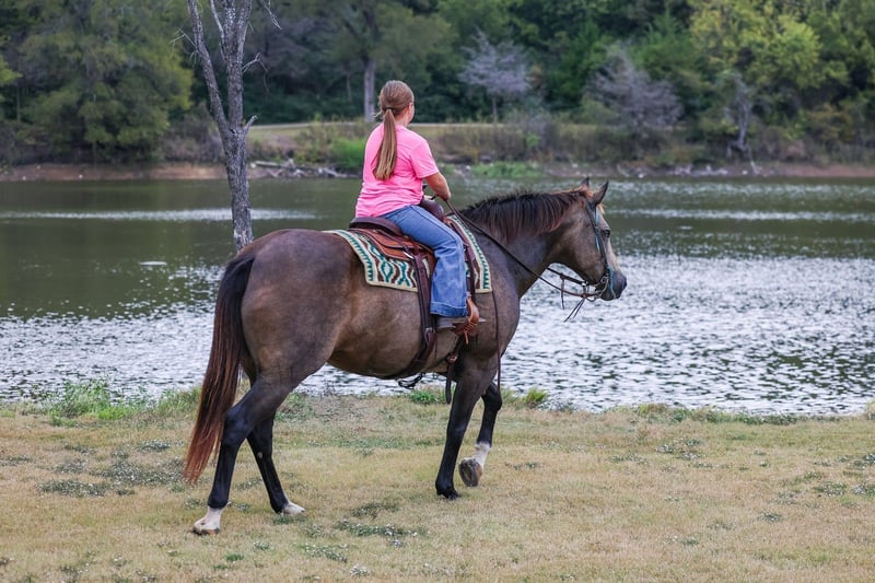 ⚜️𝐓𝐇𝐄 𝓗𝓮𝓻𝓲𝓽𝓪𝓰𝓮 𝐖𝐢𝐧𝐭𝐞𝐫 𝓒𝓵𝓪𝓼𝓼𝓲𝓬⚜️ Happening now thru MONDAY | DECEMBER 29th - Available EXCLUSIVELY on HorseBid's website! For more details and to register visit: www.Horsebid.com CONSIGNOR CONTACT: MM Ranch 469-318-1902 LOCATION: Forney, TX BREED: Quarter Horse REGISTERED: No REGISTERED NAME: Dumpling COLOR: Buckskin HEIGHT: 15 AGE: 12 GENDER: Mare This is 🥟 Dumpling 🥟 , a true one of a kind. She is healthy fat girl that is a dark buckskin with a lighter undercoat with huge dapples everywhere. Lol you could say she has dapples as big as apples. She is an absolutely GLAMOROUS thick mare standing 15 hands tall. She is just as wide as she is tall. 😂 She has the most loving and kind disposition. She is naturally gentle and kind. Doesn’t have a mean bone in her body. Absolutely loves attention from any and everyone. Especially kids!!! Not even an ounce of spookiness. No snootiness or watchiness. Absolutely no bad habits. She is the ultimate sweetheart. She has been used on a big working ranch. She has all the ability and cow sense. She is so talented and smart. And so easy to ride.✨This girl has the best rocking chair smooth lope. She is so refined and elegant. Her trot and lope is Effortless for her!! So fun and easy to ride. You barely have to squeeze to get her to step off in a lope. She is a been there done that type that is ready to go any type of adventure. She has been rode both in and out of the arena. Rode out on the ranch and checked cattle and been on lots of trail rides. Even had some roping done on her and true ranch work done on her. You do not have to be a cowboy to ride her though. 💥 Because the best thing about her is she is absolutely safe and gentle for anyone. I have never seen this mare do anything wrong. No bad habits. Absolutely no quirks or vices about her. ⭐️ She perfect to be mounted. Stands perfect for baths. She will meet you at the gate every time. And comes right up to you and puts her head in the halter. She loves going to work. She wants to please and wants to learn. Absolutely NO warming her up. Just jump on her and go. She is safe for anyone to ride!!! She really has the capability to do anything you want to do on her. You will get noticed riding her. She is pretty. The cherry on top 🍒 is Dumpling is guaranteed 100% in every way. 🌎 We can and will help arrange affordable shipping if needed. She is up to date on all shots and worming. She just had her feet done. She is ready to go to her new home. Call with anymore questions you may have about 🥟 Dumpling 🥟!!!