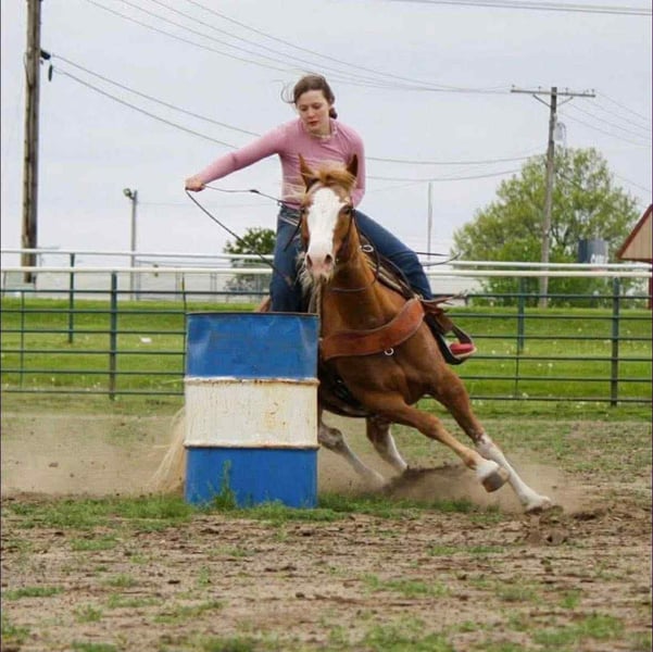 "AVAILABLE ON ONLINE HORSE AUCTION AT www DOT MagicHorseAuction DOT com BIDDING OPEN NOW thru TUESDAY | October 28TH! - BUY IT NOW AVAILABLE! *Final price will be determined on auction site* CONSIGNOR CONTACT INFO: Bar B Equine LLC 573-416-6558 LOCATION: Owensville, MO "Introducing Cedar, the horse one could only dream of having for themselves! This stunning red roan sabino 12-year-old mare stands at 15 hands tall and is a finished 3D barrel horse, ready to take you to the winner's circle at local shows. Cedar's the perfect choice for beginners and youth riders—easy going with impeccable ground and saddle manners. She self-loads, backs off the trailer effortlessly, and hauls like a dream, whether it's solo or in a group. Fun to ride and equipped with a handy neck rein and leg pressure, Cedar excels on trails, confidently crossing obstacles and embracing the great outdoors. There has never been a time I’ve dreaded being around or on this mare, everything is always such a breeze and completely hassle free. With her sweet personality and desire for attention, catching her is never a chore! Cedar is sound, requires no maintenance (even barefoot), and thrives on a simple forage diet. Plus, she stands up beautifully in any arena no matter how dry or sloppy and has no known health issues, aside from a minor scar that doesn’t bother her a lick. No need for spurs here—she's all about cooperation! Cedar rides in all sorts of variety, being a halter, bridal, war bridal or just a neck rope- this gal will do it all bareback or saddled! Cedar has been lightly jumped over small fences and fallen trees on the trails, and she has also done some ranch/trail classes through our local saddle club! Cedar is classy, safe, and honest- and has limitless opportunities. With her eye catching color and charming chrome, you’re BOUND to turn heads everywhere! This is a mare I seriously trust to carry me through war- she is determined, and full of try yet never overdoes herself. This gal would never set you in a predicament that would make you afraid or uncomfortable, and always takes things slow until you ask for more. She is an absolute dream that I am so grateful I’ve been able to enjoy! Cedar is not barn, trailer, buddy, gate, anything sour- she will walk right in and out of that arena like she’s carrying a baby. She is extremely user friendly and will work off of neck rein, leg pressure, or a light plow rein- making her incredibly enjoyable for all level riders! Whether you’re looking for a partner to enjoy the trails with, a horse the whole family can enjoy, something to show you the ropes of the show world, or a step up barrel horse for you or your kiddos- Cedar has you covered in more than just one aspect! I really can’t say enough good things about this mare, and could ramble on and on about her for days on end- but I’ll just end by saying that this mare has done us wonders, she makes every horse task less chore-like, less stressful- she gives the joy in the simple things. She really makes you grateful for good horses, and we’ve been incredibly over the moon grateful for her!