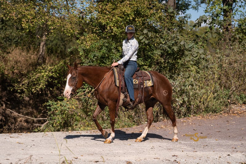 ⚜️𝐓𝐇𝐄 𝐅𝐀𝐋𝐋 𝐇𝐄𝐑𝐈𝐓𝐀𝐆𝐄 𝐂𝐋𝐀𝐒𝐒𝐈𝐂⚜️ Happening now thru MONDAY | NOVEMBER 3rd - Available EXCLUSIVELY on HorseBid's website! For more details and to register visit: www.Horsebid.com CONSIGNOR CONTACT: Broken S Equine Beau 573-303-4087 or Kieran 908-645-2127 LOCATION: Bogard, MO BREED: Quarter Horse REGISTERED: Yes REGISTERED NAME: Miss Light Trash ** 𝘉𝘺 𝘛𝘳𝘢𝘴𝘩𝘢𝘥𝘦𝘰𝘶𝘴** COLOR: Sorrel HEIGHT: 14.3 AGE: 13 GENDER: Mare Miss Light Trash "Missy" is a 13 year old AQHA mare standing a stout and sturdy, perfectly put together, 14.3 hands high. She is an own daughter of Trashadeous. Missy is the definition of safe, and is a finished reining horse through and through. She has taught countless youngsters (and adults) the ropes, trail rides, goes English, and has been a fantastic broodmare too! Whether your goal is to learn, gain confidence, win in the show pen, or have a qualified and proven broodmare to take your program to the next level - Missy will not disappoint. Under saddle, Missy is elegant, stylish, and confident. She performs all the reining maneuvers with ease, and is happy top make up for rider error when needed. She knows her job and does not need a constant professional program to stay sharp. She has effortless spins, big stops, and flying changes. She lopes easy circles and is more than happy to walk and jog around with the kids all day long! If you want a seasoned pro to teach you the ropes, Missy is your girl. You can take her anywhere and she comes off the trailer a true professional anywhere she goes. On the trails, Missy is happy to relax and go along wherever you point her. She crosses water, is safe in traffic, and will ride alone or in a group. She does not get worked up by her surroundings, and is just as happy riding out across the pasture as she is in the show pen. In the barn, Missy is sweet and gentle. She is happy living in her stall or out in the pasture. She is an easy mare to have around, and is no drama. She is polite and sensible around studs, other mares, and colts. She loves her people, and enjoys getting attention. ⚫️Missy is an easy keeper with no quirks. We have a recent, clean vet check on file. ⚫️Our program aims to train and produce top quality horses and ponies for all disciplines and experience levels. Check out our website for testimonials! ⚫️We are located in Bogard, MO. We can help you arrange shipping anywhere! ⚫️For more information about Missy, or any of our other horses call or text us. Kieran 908-645-2127 Beau 573-303-4087