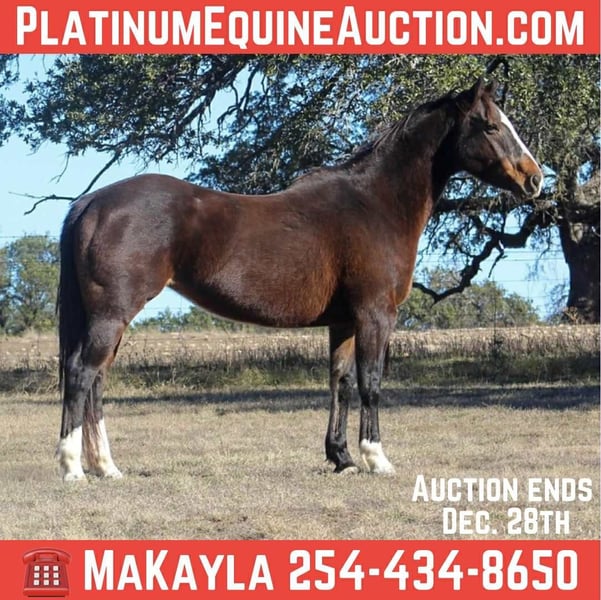 ONLINE AUCTION Place your bids at www.PlatinumEquineAuction.com Starting Bid $3500 Auction ends December 28th, 2025 Need a new saddle? Check out White Rock Saddles on our website or Facebook A Runnin Chant, aka Daisy, is a 2011 mare standing 15.1 hands tall, known for her super gentle nature and versatility. She’s an ideal horse for families because kids can easily hop on and enjoy a safe, fun ride, whether it’s just playing around or learning to ride confidently. Daisy’s calm temperament makes her perfect for young riders who need a trustworthy partner to build their skills. Daisy is equally impressive—she’s great on the trails, steady and sure-footed, making every ride comfortable and enjoyable. She’s also experienced in ranch work, including catching cows, thanks to her excellent neck reining and responsiveness. Whether you’re out exploring nature or getting some work done, Daisy handles it all with a willing and gentle attitude. If you want a horse that’s safe and fun for kids yet capable and reliable for adult riders, Daisy is the perfect choice. She’s ready to be your family’s next all-around horse! Come see her for yourself or we can schedule a FaceTime to meet him! Call or text Makayla with MW Horses at 254-434-8650. Need hauling? We got a list of reliable haulers around the US! Don’t miss out on this amazing opportunity to add a truly special horse to your home! ONLINE AUCTION Place your bids at www.PlatinumEquineAuction.com Starting Bid $3500 Auction ends December 28th, 2025 Need a new saddle? Check out White Rock Saddles on our website or Facebook