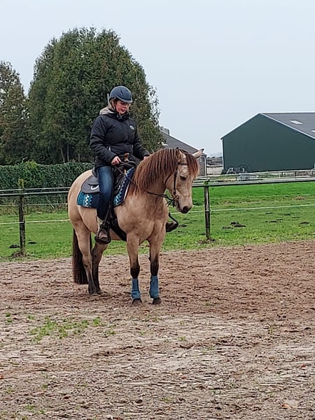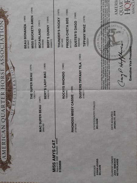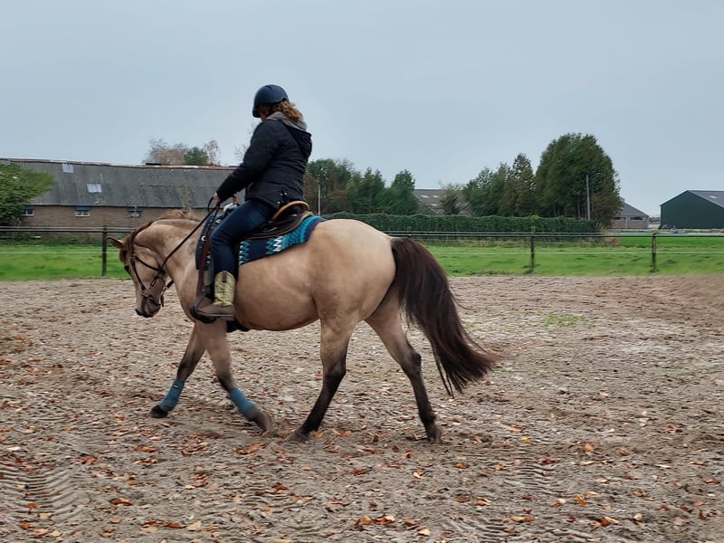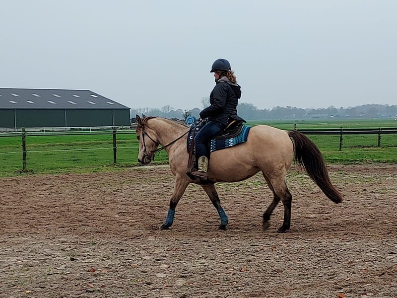 Lieve Quarterhorse merrie van 17 jaar. Lief in omgang, braaf bij hoefsmid, makkelijk te laden. Heeft een stamboom en panel 5 n/n Heeft 2 hele mooie veulens gehad en is een hele lieve moeder. Is reing ingereden, maar hier voornamelijk recreatief gereden, maar kent wel de basis principes van de western/ trail. Is braaf met rijden, ze heeft alleen altijd haast 😅 Heeft helaas atrose aan haar rechter voorbeen, maar hier voor alsnog nog geen last van als ze recreatief gereden wordt. Ook zeer geschikt als weidemaatje, staat hier met twee andere merries. Overdag op wei of paddock en 's nachts op stal. Heeft geen stal ondeugden. Staat niet op ijzers, verder in goede conditie. Gaat alleen weg als het van beide kanten een goede klik is. Voor vragen bel op doe een appje Groetjes J.Immeker