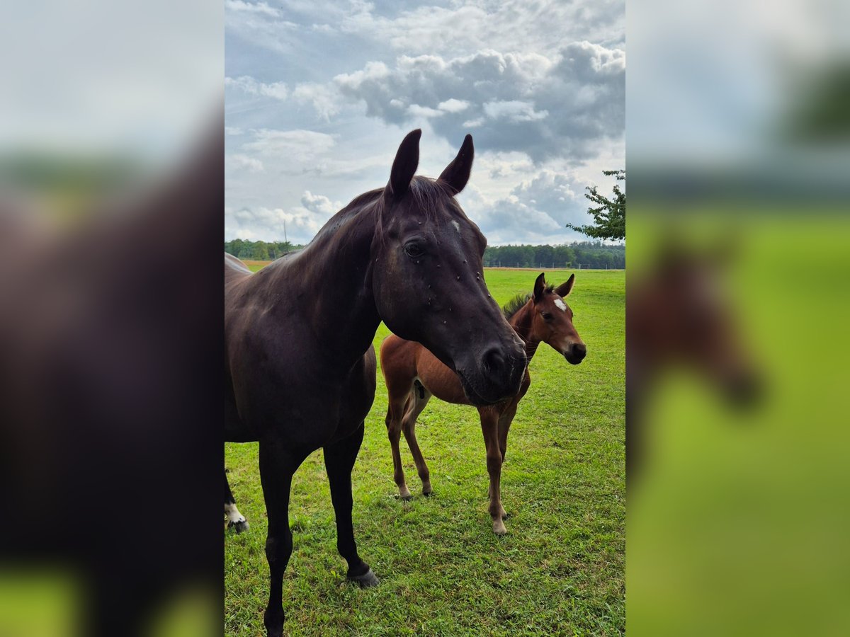 Schweren Herzens verkaufe ich meine Quarterhorse Stute "Sou" Sie ist im Mai 2006 geboren. Ich züchte nicht mehr, aus diesem Grund wird sie als reine Zuchtstute verkauft. Sou hat bisher ingesammt 7 Fohlen geboren. Davon 2 bei mir. Ihre Geburten verliefen problemlos. Bei mir wurde sie im Natursprung bedeckt wo Sie ohne Probleme aufgenommen hat. Sie ist eine tolle Mutter und hat volles Papier von der AQHA. 5 Panel- Test und IMM/MYHM n/n. Equidenpass liegt natürlich vor. Eingetragen im Basis-Zuchtbuch bei der DQHA. Sou hat einen Foundation Blutanteil von 86%. Regelmäßig entwurmt und Tetanus/Tollwut Impfung. Zahnkontrolle. Sie ist eher Ranghoch. Steht in einer Stutenherde im Offenstall. Kennt aber auch Boxenhaltung. Aktuell hat sie noch ein Fohlen bei Fuß. (geboren 07/2025). Sie wird als reine Zuchstute verkauft! Läuft barhuf, ist ca. 1,50 cm groß.