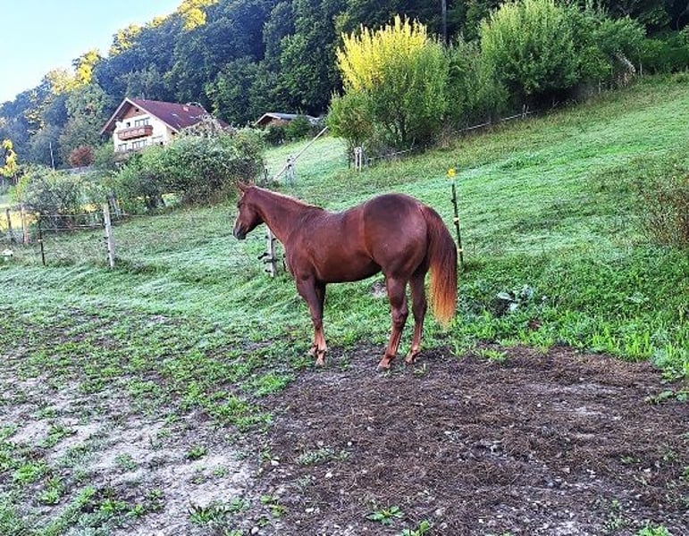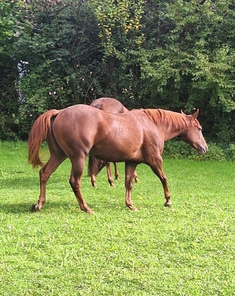 TINA - a wonderful mare, gentle in handling and interested in everything. She is growing up in a family environment. She is line-bred on Topsail Cody. Correct and equipped with very good movements. 6 Panel n/n Her sire I am a Ruf Boy passes on his cool character, impeccable conformation, and great movement to his offspring. He is licensed and registered in the Performance Stallion Book of the DQHA. Achievements: 2-time Futurity Champion Open 2015, World Show Qualifier Junior Reining Open 2015, Silver Medal at the European Championship AQHA HSB Reining Open 2016, Gold Medal Young Horse Championship Reining GO 2016, 5th place Breeders Derby Open, Bronze Trophy Champion, and much more. Video via WhatsApp 0043 664 7312 7655