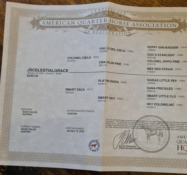 Colonel CieloGALLO DEL CIELOCRACKLIN PINEPEPPY SAN BADGERDOC´S STARLIGHTCOLONEL ZIPPO PINEMEE RED STRAW