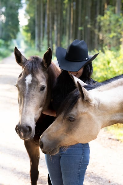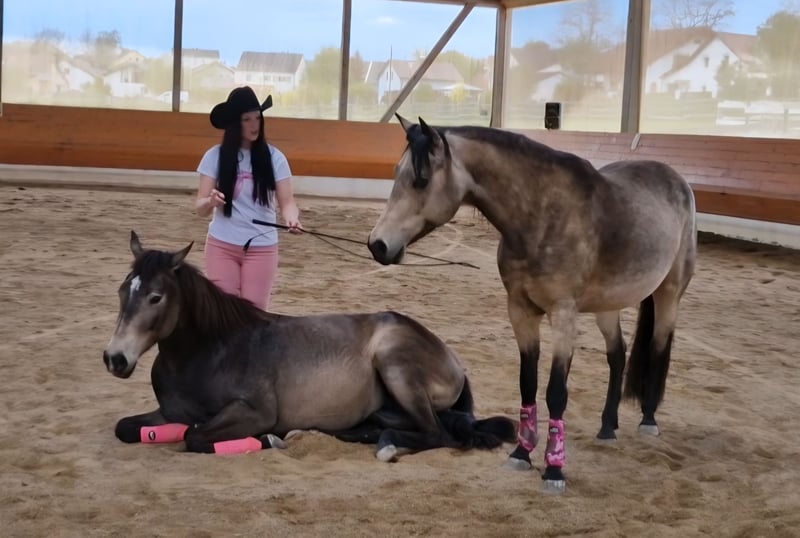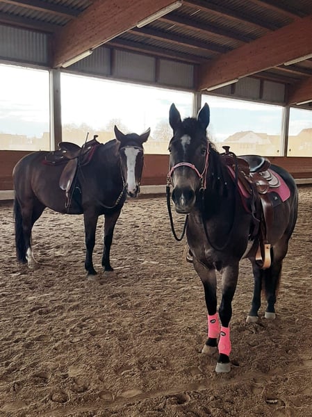 Hallo, ich möchte euch meine kleine Missy vorstellen. Missy ist ein schmaler, sportlich, schlanker Typ ca. 1,50m- kein Gewichtsträger und eine wirklich tolle Bewegerin! In ihrer Abstammung finden sich bekannte Reiner wie Einstein Revolution. Sie ist jetzt seit 2,5 Jahren bei mir und wurde schonend gearbeitet. Sie zeigt sich sehr willig und talentiert in der Freiarbeit und möchte immer gefallen! Missy steht seit sie bei mir ist in einer großen, gemischten Herde in Hitzhofen bei Ingolstadt und fühlt sich sehr wohl. Sie ist rang hoch und hat auch noch viel eigene Meinung! Sie ist menschenbezogen und sucht jemanden, der sich viel mit ihr beschäftigt und sie abwechslungsreich auslastet. Ich habe Missy bereits früh angefangen als Handpferd mit ins Gelände zu nehmen und ihr die Welt spielerisch zu zeigen. Meine Stute Sugar hat ihr dabei viel Sicherheit gegeben und sie hat viel durch beobachten gelernt. In der Freiarbeit zeigt sie sich sehr talentiert und sucht immer die Nähe zu ihrem Menschen. Sie wurde am Seil und in der Freiarbeit viel Desensibilisiert und das Gegendruckverhalten wurde umgelenkt. Missy geht heute alleine oder in der Gruppe ins Gelände und lässt sich Problemlos mit Sitz und Stimme regulieren. In der Halle, ist sie sicher in Schritt, Trab, Galopp unterwegs und hat eine gute und schonende Basisausbildung nach dem Pro Ride Konzept genossen. Als 2 jährige hatte sie einen Unfall bei dem sie sich den Rücken verletzt hatte. Diese Verletzung ist laut Tierarzt (kann bei dem behandelten Tierarzt gerne nachgefragt werden) komplett ausgeheilt und behindert sie nicht! Sie wird von mir min. 3mal die Woche geritten - die restlichen Tage der Woche machen wir Stangen-, Longen-, Freiarbeit oder sie geht als Handpferd mit ins Gelände. Missy wird mit passendem Sattel abgegeben (nicht im Preis inbegriffen), da sie sich aber im Wachstum befindet – sollte eine regelmäßige Sattelkontrolle selbstverständlich sein. Es handelt sich um keinen Notverkauf oder ein Verkauf der unter Zeitdruck steht. Deshalb wäre es richtig klasse, wenn du dir Zeit nimmst sie gut kennenzulernen und könntest auch gerne öfter kommen, wenn von deiner Seite gewünscht. Ich möchte sie gerne in erfahrene Hände und an jemanden mit viel Zeit abgeben. Offenstall wäre wünschenswert - sie kennt auch nichts anderes. Natürlich wird Missy regelmäßig geimpft und entwurmt. Genauso werden 1mal im Jahr die Zähne gemacht. 5 Panel n/n Test über die Eltern getestet. Ein kurzer Intervall beim Schmied ist keine Frage. (Missy läuft Barhuf). Eine AKU kann auf Wunsch selbstverständlich gemacht werden. Für nähere Infos könnt ihr mich gerne anrufen bitte schreibt keine Nachrichten. Auf meinem Account auf Insta feelyourhorse.manship findet ihr viele Videos und Eindrücke von ihr. Platz vor Preis! Mobil 0176 322 144 05 Viele liebe Grüße