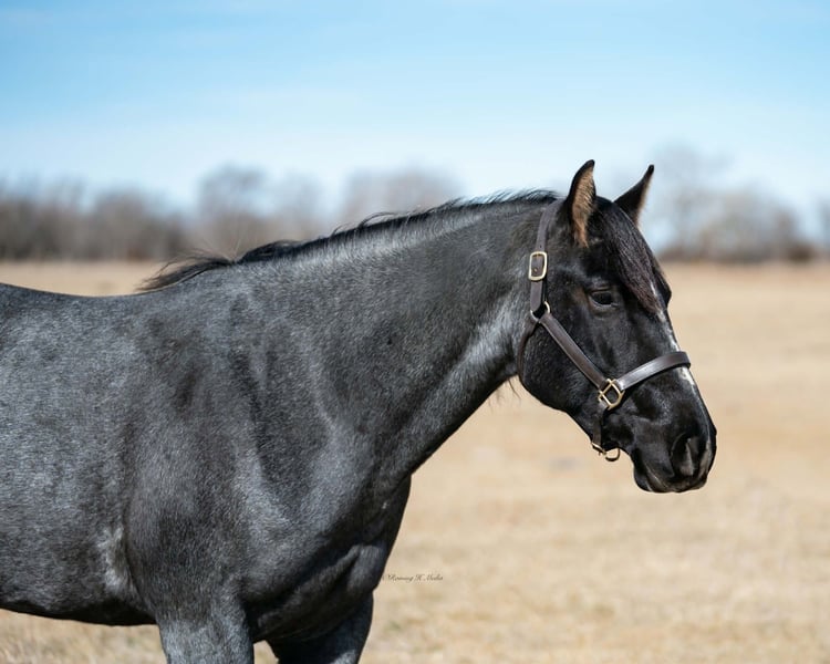 🌟𝑨𝒑𝒓𝒊𝒍 𝐀𝐋𝐋 𝐒𝐓𝐀𝐑 𝐋𝐈𝐍𝐄𝐔𝐏🌟 Happening now thru MONDAY | APRIL 6th - Available EXCLUSIVELY on HorseBid's website! For more details and to register visit: www.Horsebid.com CONSIGNOR CONTACT: Krazy K Versatility Horses 308.390.4873 LOCATION: Grand Island, NE BREED: American Quarter Horse Association REGISTERED: Yes REGISTERED NAME: Shakem Upside Down COLOR: Blue Roan HEIGHT: 15 AGE: 4 GENDER: Mare It doesn't get any better than a gorgeous, thick made blue roan mare. Zelda is that mare. She has a mane and tail most only dream of! She stands a hair over 15 hands high and is every bit of 1,100lbs. Her sire is an NRCHA Money earning son of Sannman with AQHA performance points in a number of events. Her dam is a solid ranch horse and team roping mare that stayed sound for well over a decade of solid use. She is a '22 model with a solid and deliberate foundation. Zelda has been introduced to cattle and seems to be naturally talented and level headed with them. With more experience she will be competitive in boxing or cowhorse events. Zelda has trail ridden outside in Nebraska and in Missouri state parks. She has been hauled and shown out of state as a three year old. Zelda was shown at an AQHA Versatility Ranch horse show in 2025 where she did very well! She handles new areas with ease and has no show anxiety. Zelda has a really sweet personality, she will follow you around for days and loves to be brushed on. She stands great for farrier and has no issues being tied, loaded, hauled, or bathed. She will stand so you can mount from the ground, a block, a fence, or whatever you fancy. Zelda has a great stop and a good turn around. She will ride one handed or two. Zelda moves off of legs, neck reins, will read your seat, and respond to verbal cues. She is good in a outside pen, or a stall in the barn. She is up to date on shots, dewormer, and coggins. Life is too short to settle for good enough, call me to talk more about Zelda- she truley is exceptional.