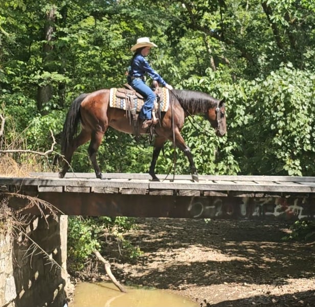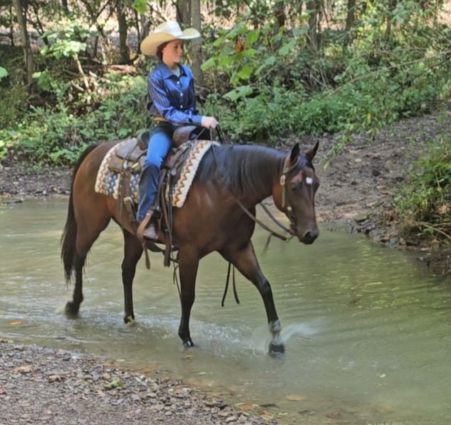🍂 𝓐𝓾𝓽𝓾𝓶𝓷 𝑨𝑳𝑳 𝑺𝑻𝑨𝑹 𝑳𝑰𝑵𝑬𝑼𝑷 🍂 Happening now thru MONDAY | OCTOBER 6th - Available EXCLUSIVELY on HorseBid's website! For more details and to register visit: www.Horsebid.com CONSIGNOR CONTACT: Pleasant Valley Equine 434-981-3863 LOCATION: Robards KY BREED: Quarter Horse REGISTERED: Yes REGISTERED NAME: Gee Whiz She Scoots COLOR: Bay HEIGHT: 14.2 AGE: 5 GENDER: Mare Checkout the bloodlines on this beautiful bay mare. She fancy bred with Topsail Whiz & Shining Spark on her papers. Sweety has all the looks, brains and athletic ability to go in any direction you want too; go show or just have a beautiful partner to hit the trails with. She stands 14.2 hands and as cute as they come. She has a great disposition, easy going more whoa then go and fun to ride and no bad habits. She has the cutest expression and has little bitty mouse ears. Saddle her up and you have a wonderful partner you can take in any direction. She walks, trots, and lopes circles in the arena. Sweety has the smoothest, little jog & a rocking chair lope. Lay the bridle reins across her neck and he’ll wrap into a nice little turnaround. She will also strike out on trail crossing logs, roads, ditches, etc. Sweety been hauled on trail rides with 100+ riders. She stands quiet to the trailer, bathing, mounting, dismounting and for the farrier. She loads in and out of the trailer and hauls great. She's 100%sound and UTD on vaccinations and coggins.