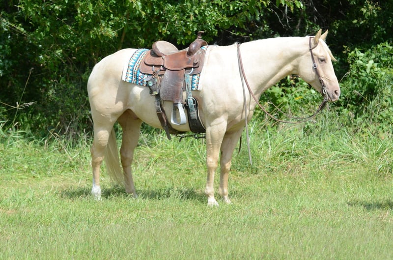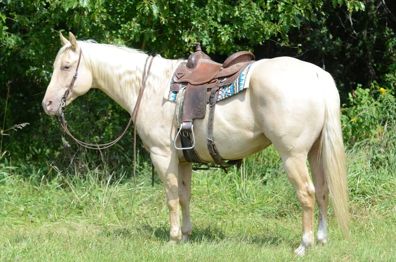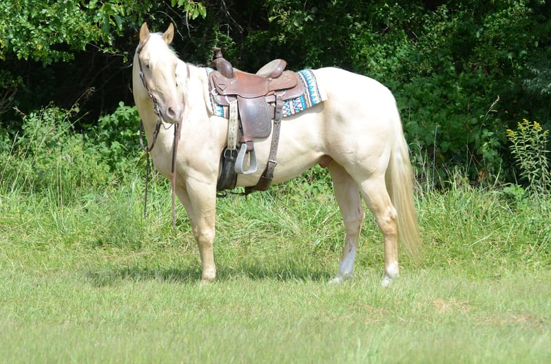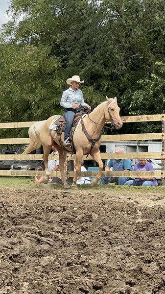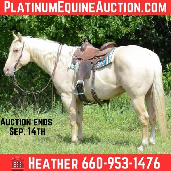 ONLINE AUCTION Place your bids at www.PlatinumEquineAuction.com Starting Bid $3500 Auction ends September 14th, 2025 Need a new saddle? Check out White Rock Saddles on our website or Facebook D.P. Suksi-Hogi “Pablo” Stunning Palomino Gelding | 15.3 Hands | Sweet, Broke, and Beautiful Meet Pablo, a gorgeous palomino gelding with a full, flowing mane and tail and eye-catching good looks. He stands 15.3 hands and is the kind of horse that turns heads everywhere he goes. His movement is just as stunning—fluid, elegant, and effortless. But he’s more than just a pretty face—he’s the total package. Kind & Gentle Personality Pablo is truly one of the sweetest horses you’ll meet. He loves attention and is a pleasure to have in the barn. Trail-Ridden & Ranch-Tested • Ridden extensively on trails • Ranch work experience • Used for roping by a youth rider • Desensitized to tarps, bull whips, and obstacles like ditches Broke, Quiet & Talented • Beautiful lead departures • Natural cow sense and try • Stands quietly for grooming, tacking, and mounting Proven Show Horse Pablo has been shown in Western Pleasure, Horsemanship, and has competed in all speed events at local shows. He recently brought home the title of All-Around Champion, proving his versatility and heart. Unshakably Quiet & Gentle – Desensitized to tarps, bull whips, and trail obstacles—he stays calm, cool, and collected. Ranch-Ridden & Roping Ready – Used for ranch work and youth roping, with natural cow sense and a willing attitude. Stunning & Smooth-Moving – Beautiful palomino with a full mane and tail, graceful lead departures, and a look that turns heads everywhere. He has been 100% Sound & is an Easy Keeper • Up to date on all shots, worming, and routine vet care • No maintenance needed Located in Princeton, MO. For more info, call Heather Stark at 660-953-1476 Whether you’re looking for a dependable trail partner, a ranch helper, or just a stunning horse to enjoy—Pablo checks every box. ONLINE AUCTION Place your bids at www.PlatinumEquineAuction.com Starting Bid $3500 Auction ends September 14th, 2025 Need a new saddle? Check out White Rock Saddles on our website or Facebook