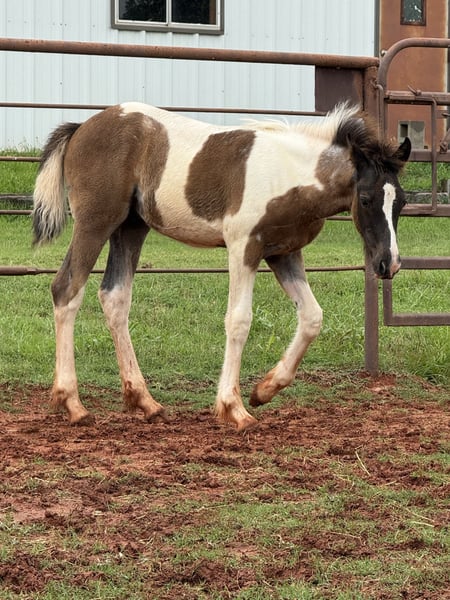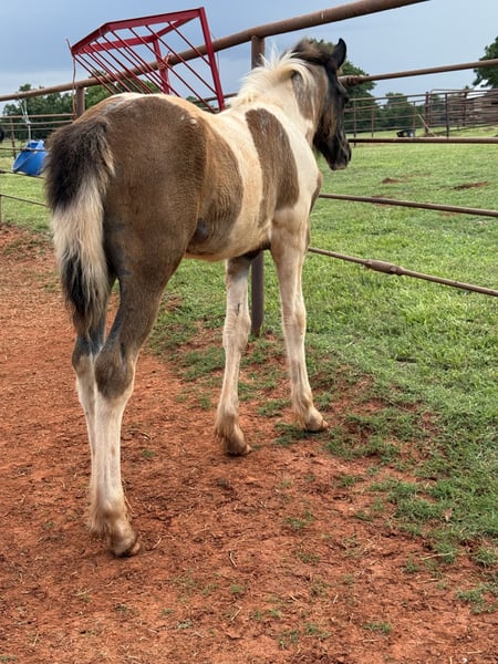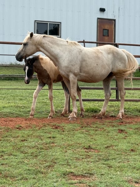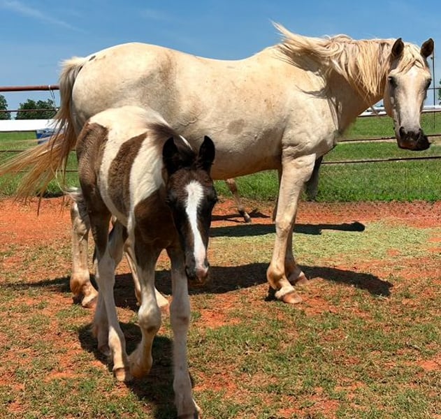 AVAILABLE ON ONLINE HORSE AUCTION AT www DOT MagicHorseAuction DOT com BIDDING OPEN NOW thru TUESDAY | JULY 22nd - BUY IT NOW AVAILABLE! *Final price will be determined on auction site* CONSIGNOR CONTACT INFO: JDT Ranch 572-205-5282 LOCATION: Crescent, OK "Wow! Don’t miss this extraordinary 3 in 1 package opportunity ! meet Athena and her blue roan tobiano gypsy cross stud colt Archer!! ❤️❤️❤️ What a way to upgrade your program right here! Athena is a 8 year old AQHA palomino roan mare. She is just the sweetest girl! And the absolute best mama ! She raises some strapping babies! She has always had happy cross goals in her broodmare career and has produced color every single time! Athena is easy to catch great for the farrier and is up to date on working and vaccines . She is such a joy to have around makes the breeding business a breeze! She has always foaled easily and stays fat even with a foal on her side! Athena is bred back the same way for 2026! Take a look at this stunning BLUE ROAN TOBIANO stud colt Archer . Don’t let his shaggy baby coat fool you he is a true blue roan ! Not only that he is so flashy! Has all the feather bone and hair you could want!!! His full brother stands 15’3 at two years old ! Watch his movement ! It’s absolutely effortless and gorgeous! Will make a high end show prospect! Archer has been exposed to all things on the ranch he will leave the halter broke wormed and vaccinated he really is something to see ! Located in crescent Oklahoma call Megan with Jdt ranch 572-205-5282
