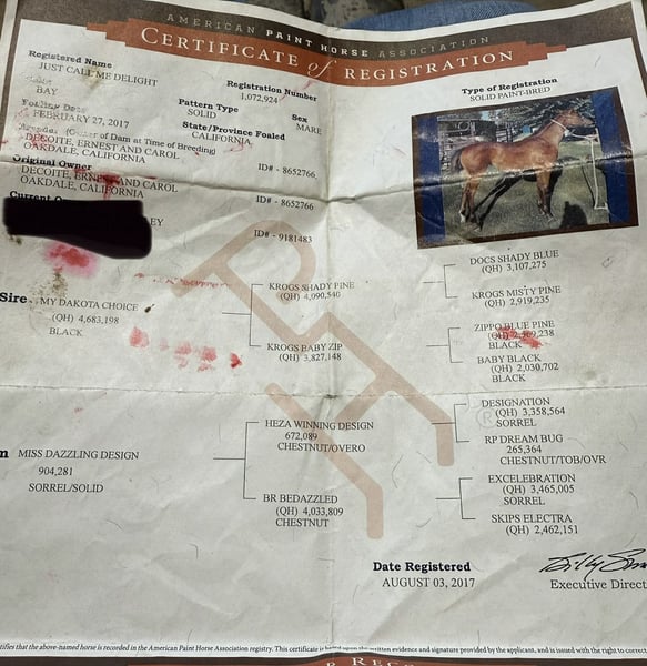 ONLINE AUCTION Place your bids at www.PlatinumEquineAuction.com Starting Bid $3500 Auction ends January 18th, 2026 Need a new saddle? Check out White Rock Saddles on our website or Facebook JUST CALL ME DELIGHT 2017 APHA • 15 hands • Stout-made bay mare Dependable. Pretty. Easy to get along with. If you’re searching for a mare that’s trustworthy, well put together, and nice to look at, here she is. Delight is the kind of horse that makes the search worth it. She’s not loud or over-the-top. She’s simply a really good mare in every sense of the word. She’s a rich bay with a soft, kind expression and a strong, balanced build. There’s a quiet confidence about her that people notice right away. She stands out without trying and leaves a good impression wherever she goes. Delight is easy to live with and even easier to enjoy. She stalls or pastures quietly, stands well to tack, bathes without fuss, and hauls calmly. No quirks, no attitude, no added work. She’s the kind of horse that fits into your routine instead of changing it. Under saddle, she’s smooth, relaxed, and honest. In the arena, she keeps a steady rhythm, moves willingly forward, and flows through her gaits comfortably. She’s uncomplicated and forgiving, making every ride pleasant and stress-free. Outside the arena, Delight stays just as sensible. She’s been used on the trail and in ranch settings, where she crosses water, handles obstacles, works through brush, and navigates uneven ground with ease. She’s helped gather and stays focused and level-headed while doing her job. Her pedigree brings depth to an already solid foundation. By My Dakota Choice and out of Miss Dazzling Design, with influence from Docs Shady Blue and Heza Winning Design, she comes from bloodlines known for producing capable, good-minded horses. That quality shows in how she thinks and handles new situations. Delight truly earns her name. She’s pleasant to be around, comfortable to ride, and the kind of mare you appreciate more with every ride. A solid, dependable horse that’s as enjoyable in the barn as she is under saddle. Located in Paicines, California Nationwide shipping available with reputable haulers 📞 Contact Longhorn Ranch – Dina 831-537-1915 ONLINE AUCTION Place your bids at www.PlatinumEquineAuction.com Starting Bid $3500 Auction ends January 18th, 2026 Need a new saddle? Check out White Rock Saddles on our website or Facebook