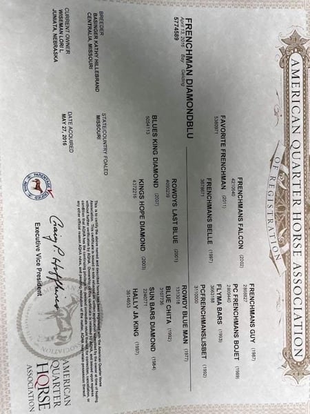 ONLINE AUCTION Place your bids at www.PlatinumEquineAuction.com Starting Bid $3500 Auction ends December 15th, 2024 Need a new saddle? Check out White Rock Saddles on our website or Facebook! AQHA 2016 Frenchman Diamondblu Bay Gelding. Asher stands at 16 hands tall and is built like a Mac truck weighing about 1350 pounds. He is a nice thick, sturdy built with nice legs and feet. He’s currently shod all the way around. Asher has been on overnight trail rides, week long trail rides, packed saddle bags, and tied to the picket line overnight. Asher will trail ride alone, in small groups, as well as large groups. He is use to traffic, ATV’s, heavy machinery and dogs. He will travel the trails with ease, go through the creeks, over bridges and up and down the big cliffs. Asher will neck rein or you can ride him 2 handed, he has a nice trot and a really nice slow lope. Stops when asked and backs up. Asher has pushed cattle around in the fields and been roped off of a little. On the ground Asher has great ground manners and will be patient and respectful everyday. He stands tied quietly, stands for farrier, to groom, tack up and baths. He jumps right in the trailer and unloads easily. He will stand at a mounting block for you to get on and off and doesn’t move until asked. Asher is a very personable horse and is very enjoyable to have around the barn. Currently Asher is turned out on a large pasture with many other horses and gets along great with them all, he has also been stalled with zero issues. Easy to catch, you ask? Yes he will be the first one to you and drops his head for the halter. He loves attention and is always wanting to please. Asher has no vices, he’s sane, honest and sound. We invite anyone and everyone to come meet and ride Asher at our barn in Henderson, Kentucky. We are happy to assist with transportation arrangements. Contact Darrel Townsend 270-844-2400 for any and all questions. ONLINE AUCTION Place your bids at www.PlatinumEquineAuction.com Starting Bid $3500 Auction ends December 15th, 2024 Need a new saddle? Check out White Rock Saddles on our website or Facebook!