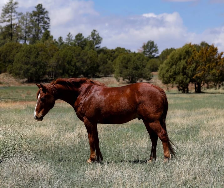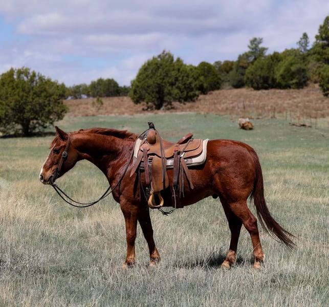 ONLINE AUCTION Place your bids at www.PlatinumEquineAuction.com Starting Bid $3500 Auction ends May 4th, 2025 Need a new saddle? Check out White Rock Saddles on our website or Facebook! Alamo is a grade 10 year old gelding standing 14.1hh. This gorgeous little stout made, dense boned gelding is an absolute blast to ride no matter what you ask of him! Whether you’re looking to mosey on down the trails, play around in the arena, or go do a long days work Alamo is the one for you! We’ve used Alamo extensively around the ranch making him surefooted, well rounded, and as reliable as can be no matter what you throw his way. Mosey on down the trail, trek through the rocky rough country, cruise through flowing creeks and rivers, bulldoze through thick brush, jump fallen logs, you name it and Alamo will ride right on through it. No matter where you plan your next adventure, Alamo will be eager to go! Don’t have any trails? No problem! Alamo is just as great in town! Speeding traffic, painted crosswalks, barking dogs, cruising bikes, walking pedestrians. Alamo will ride right on by without a care in the world. Not only is this gelding a blast to ride outside or through town, he’s just as fun in the arena! He will walk, trot, and lope both ways with ease as well as neck rein and has a good stop. No need for a saddle or bridle! Hop on bareback with a halter and Alamo will take just as good care of you!!! Alamo is easy to catch, and good to groom, saddle, bridle, bathe, shoe, and load. Will come with a clean coggins and health! Transport can easily be arranged anywhere in the US!!! Located in Camp Verde, AZ. Contact D/C Equine Services Dallas 804-822-2233 with any questions. ONLINE AUCTION Place your bids at www.PlatinumEquineAuction.com Starting Bid $3500 Auction ends May 4th, 2025 Need a new saddle? Check out White Rock Saddles on our website or Facebook!