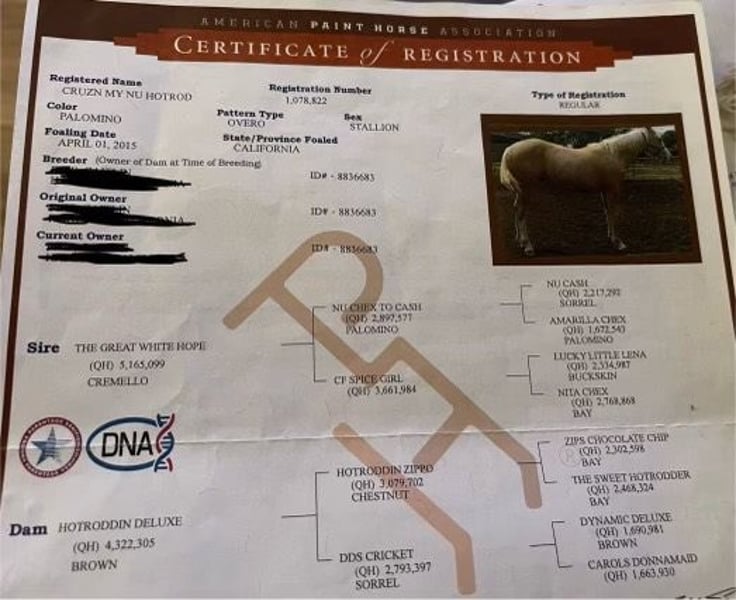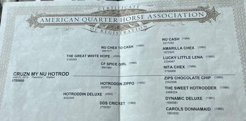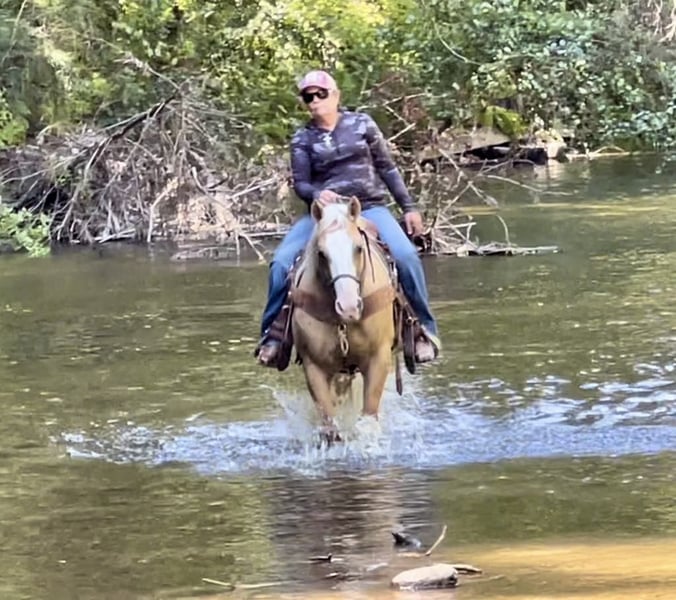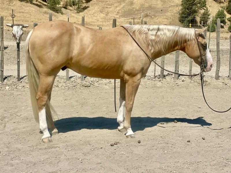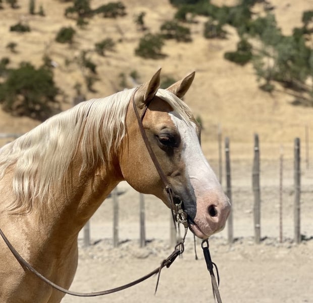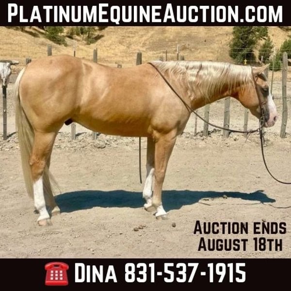 ONLINE AUCTION Place your bids at www.PlatinumEquineAuction.com Starting Bid $3500 Auction ends August 18th, 2024 Need a new saddle? Check out White Rock Saddles on our website or Facebook! Cruzn My Nu Hotrod is one of the coolest colored palomino geldings we have offered. He is dual registered with APHA and AQHA. He is a 2015 model, standing 14.3 hand. Hotrod has the look and shape everyone hopes to get. He is by The Great White Hope who goes back to NRHA 2 million dollar sire Nu Chex To Cash he also has the famous hall of fame stallion Zipps Chocolate Chip on his papers. Hotrod was started by a reining horse trainer and has all the fluently classy moves. He has been shown in ranch riding, ranch classes and trail. Hotrod has so much talent and a huge heart making him enjoyable for any discipline. Hotrod has a resume a mile long. He has classy spins, beautiful sliding stop and effortless circles. This boy has no holes or funny business making him the barn favorite to go out and do any job he is always gentle. Hotrod has superior ground manners making him a breeze to clip, brush, shoe, saddle and bath with zero conflict. Hotrod will cross any obstacle you throw at him with cadence and ease. He has done teetering bridges, crossed tires, will trot over poles and does the back through great. Hotrod has done all phases of ranch work and fun to brand, doctor, and sort cattle on he loves cow work. He is great out in the pastures gathering and will be sure footed, safe and will stay on any trail you choose he will walk over logs big rocks and ride through heavy brush. Hotrod has been started heeling and has what it takes to be a great rope horse. He hunts the corner, will get in position by himself, and has a great natural sliding stop. He has been hauled to state parks and has seen big trains, tourists, bicycle, hikers and joggers out on the busy trails and is completely unfazed by any of it. He has been ridden on the beaches and loves the water. Hotrod would be a great fit for a family trail horse, but is also broke enough to accomplish any task on the ranch. He hauls great hops in any trailer stands tied in cross ties, stands for mounting and dismounting. They don’t make them like this anymore! Hotrod is highly functional and still the definition of safe. This one of a kind gentlemen can take any amount of time off and still be gentle for the most novice riders. Hotrod has been exposed to busy streets cars, balls and flags and nothing bothers this exceptional gelding. Hotrod is athletic, good minded safe and a reliable ride. Hotrod is eager to please and always meets you at the gate to be caught. He is the go to for green riders and all around barn favorite. This wonderful boy has been a top notch ranch horse and family horse also fancy and classy enough for the show pen. We would be happy to show you this phenomenal gelding, give us call at Longhorn Ranch Dina 831-537-1915 Located in Paicines, CA. ONLINE AUCTION Place your bids at www.PlatinumEquineAuction.com Starting Bid $3500 Auction ends August 18th, 2024 Need a new saddle? Check out White Rock Saddles on our website or Facebook!