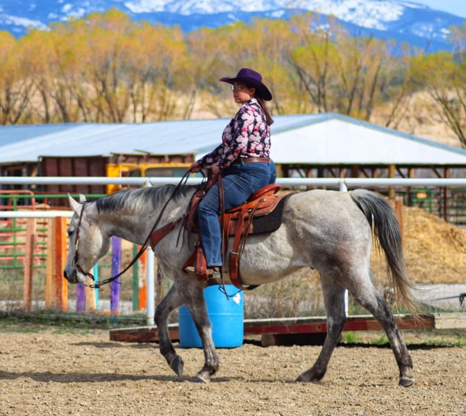Okies Full Moon, fondly known as “Okie,” is a versatile and eye-catching gelding with a strong foundation and an exciting future—especially in the show ring, where he is already showing excellent potential in ranch and pleasure classes. He carries himself beautifully in the show arena with smooth, balanced transitions and correct leads, making him a pleasure to ride and watch. Beyond the ring, Okie is a seasoned and capable horse. He has trail ridden, traveled mountain terrain, packed animals out of thr back country, worked cattle, participated in parades, and handled a variety of environments. His background is diverse, including barrel racing, working cattle, 4-H participation, drill team experience, and carrying flags. Okie is an “in-your-pocket” type horse, forming a meaningful connection with his person and will willingly come across the field to meet you. While he enjoys the company of other horses and thrives in a herd setting, he is also comfortable working independently. He has a touch of sass that adds personality, but remains reliable and capable of providing a smooth, enjoyable ride. Okie is best suited for an intermediate to advanced rider who can appreciate his responsiveness and continue to bring out his full potential.