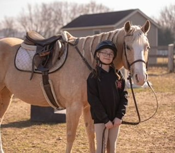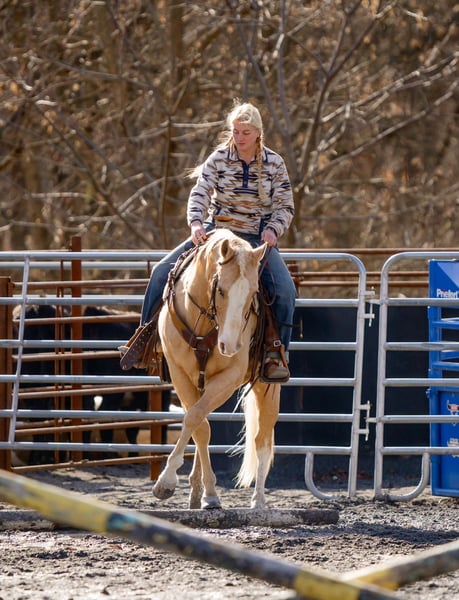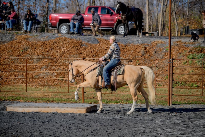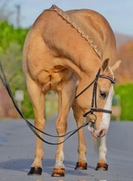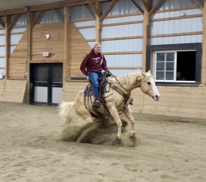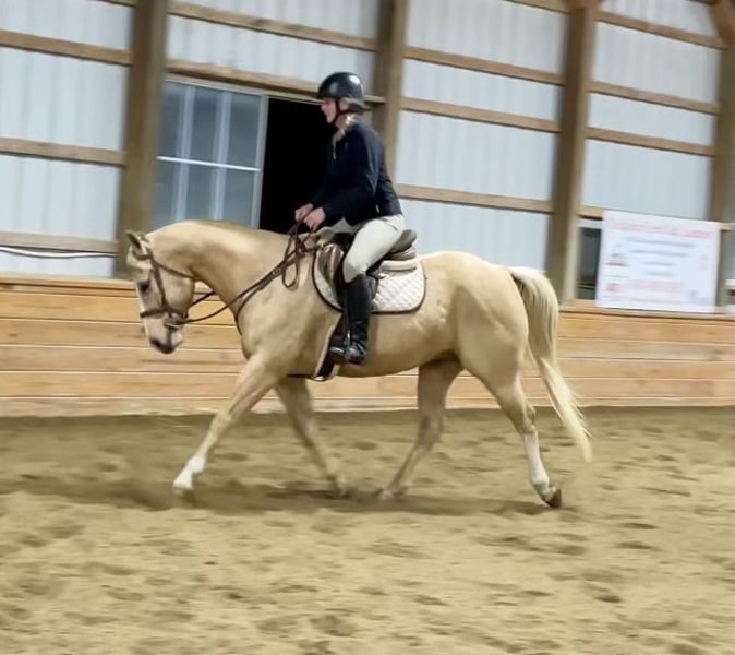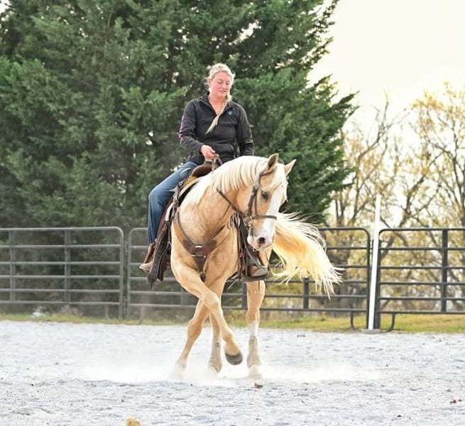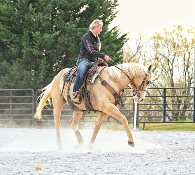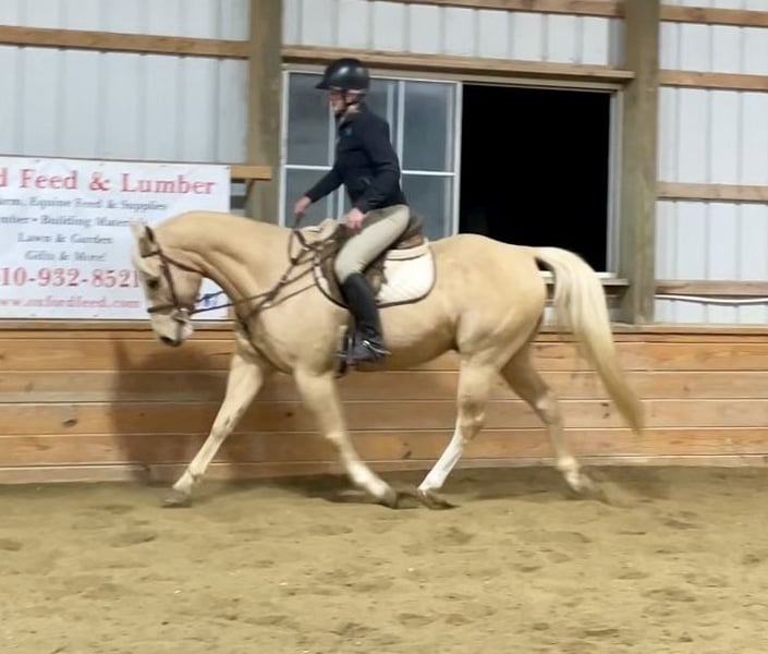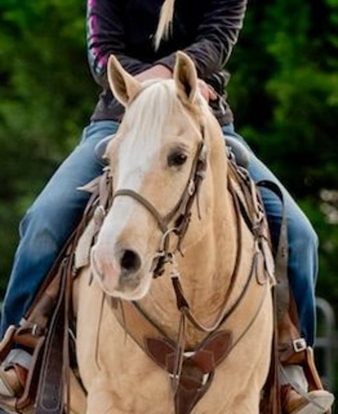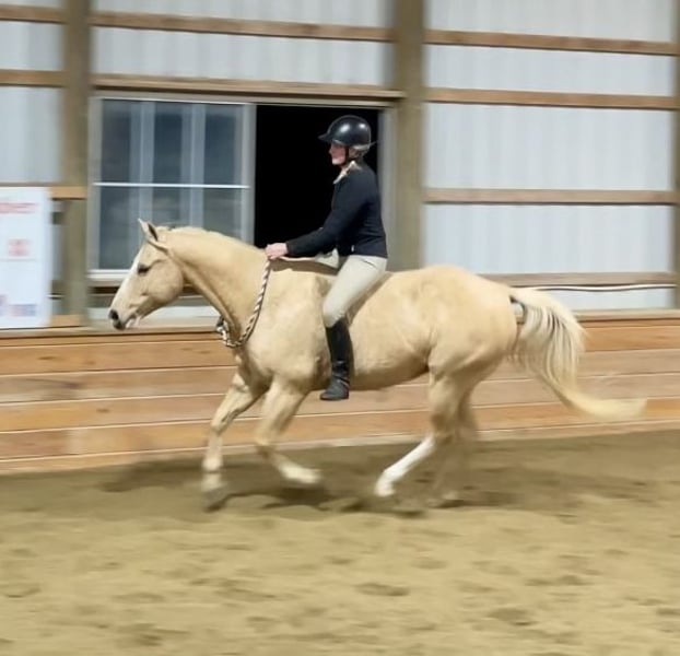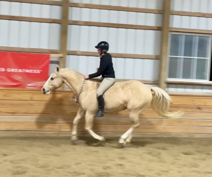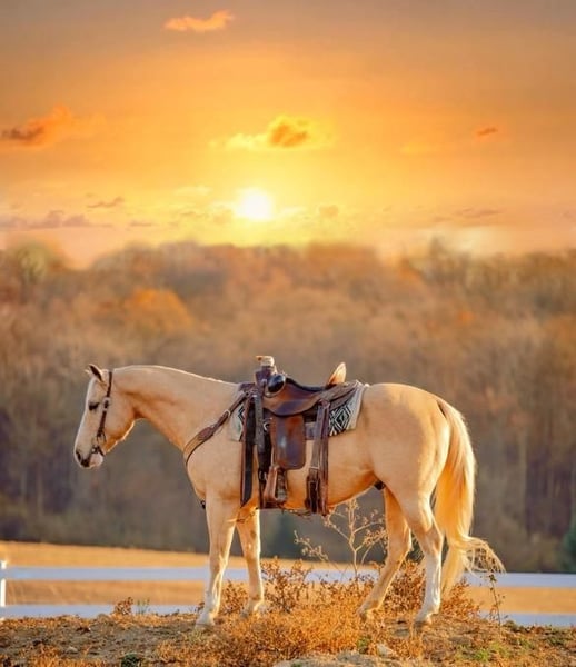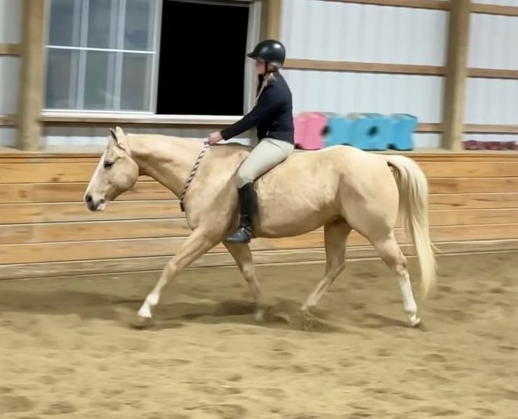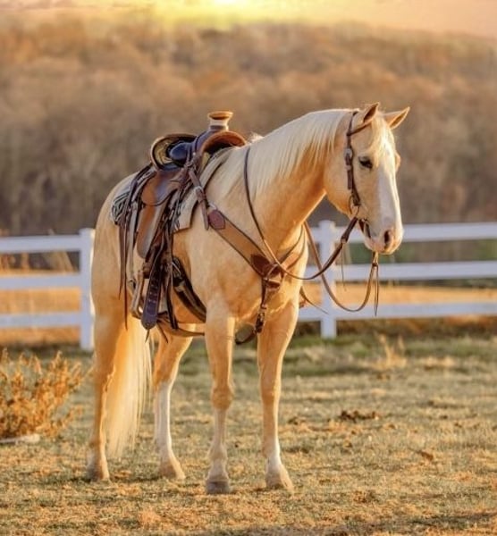 "AVAILABLE ON ONLINE HORSE AUCTION AT www DOT MagicHorseAuction DOT com BIDDING OPEN NOW thru TUESDAY | MAY 13th - BUY IT NOW AVAILABLE! *Final price will be determined on auction site* CONSIGNOR CONTACT INFO: Joe Vitale 314-422-3347 LOCATION: Pacific, MO "“Donavan” is a 9yr old, 15hh, QH gelding, who is the ultimate, versatile, safe, unicorn, that everyone needs in their life! Donnie is a true all-arounder, and no matter what discipline you currently, or want to ride in, this boy has something for everyone! Everyone that knows me, knows how much I love this horse. Here is a beautiful, palomino gelding that can dabble in absolutely anything that you want!!! I don’t even know where to start, but I will start by saying this boy is true, honest, and safe. I can genuinely say, I have never met a horse like Donavan. A horse that you can throw into any show or discipline, and he looks like he belongs there every time!!! Donnie is beginner safe, kid safe, husband safe, yet knows more than I do, and is a great teacher. In the barn, Donnie is as quiet as a mouse. He doesn’t ask for anything. He will stand on the cross ties all day long to be groomed, bathed, tacked, braided, etc. He has docile and gentle ground manners and will tiptoe around with a child. He doesn’t mind commotion and dogs running around while he is on the cross ties. He is very sweet and in your pocket and has never offered to be rude in any type of way. He is the type of horse that you can trust turning the kids loose with, knowing that he will be gentle with them. Donavan will make you feel excited to get into the saddle. He gives off an amazing vibe, and will put a smile on your face every single ride. Looking for a safe trail mount? Donnie is a trail machine and will go absolutely anywhere you ask. Through the water, over the logs, down the roads, and if you don’t feel like using a bridle today, go for a ride with a neck rope. I took Donnie out on the windiest, coldest day, for a two hour trail ride with nothing but a rope around his neck. It is such an amazing, fun, free, feeling knowing that your horse is completely in control even though you don’t have a bit in his mouth. Donavan will lead, follow, go out alone and in groups. He is safe with dogs and hounds riding on his heels. He will gently step over logs, rocks, bridges, he is very sure footed and not clumsy. He is safe with traffic, bikes, wildlife, etc. Donavan has been over night camping and will highline, or stay in a stall. Pack your saddle bag full of beer, and go enjoy your ride. Drop your reins and let Donavan take you for a relaxing adventure! He would make a great guest horse, camping partner, husband horse, kids horse, you name it. Donavan rides western, english, and bareback. Again, this boy is versatile. He came to me knowing more about western riding and reining than I do. I have actually learned so much from riding him, and he is very forgiving. I have never ridden a slide stop, and I know for a fact that I am not doing it right, but he does his job and takes care of me. He doesn’t have a preference, tack him up english and go jump around or dabble in dressage, or go play around with cows and practice your reining pattern. He knows both western and english buttons, so don’t be afraid if you don’t know one or the other. His gaits are smooth, and comfortable. Donnie will ride around as a push ride, but he goes right to work when he knows it is time to work! He is currently set up as safe for beginners, yet knows so much and has the willingness to please and entertain advanced riders. Me, an advanced rider, cannot wait to ride him, and learn from him every ride. In the ring, Donavan will walk, jog, trot, extended trot, lope, canter, and move out into gallop all on a loose rein, or collected. He is the perfect combo of whoa and go, and he can tell when he has a kid on him, or when he has to go to work. I have hauled Donnie to tons of different trails and arenas and he is the same horse every time. I let him sit for weeks, throw him in the trailer and go to a show and he steps right into the ring and does his job. I have shown him in sorting, team penning, and trail obstacle. He would make someone an amazing show horse in the western and english world. He would do amazing in ranch trail, ranch riding, reining, trail, western dressage, classical dressage, hunters, and much more. He has beautiful gaits! Donovan’s gaits are very easy to control, he knows voice commands and will respond to your seat and legs. Throw a kid or beginner on him and he will gently go around the ring. Hop on and put him to work, and he will slide stop, spin, side pass, move laterally off of leg, collect, jump, you name it. He knows his leads, and will go from walk to lope with a kiss. I have ridden him a lot with just a neck rope as well!!! Again, this horse knows more than I do in the ring, yet he will ride like a lesson horse, being less sensitive to leg etc, until you ask him to go to work and he will turn on his buttons! You can easily bring him down through the gaits, or ask for a big stop. He knows how to move his shoulders, hind quarters and rib cage. Donavan will pop over fences on the buckle, and does not get forward while jumping. He has super cute form over fences as well! With that being said, I took this boy out fox hunting for thanksgiving, not realizing how many people were going to attend and how fast that we were going to travel! Donavan jumped everything and didn’t hesitate at the big stuff, he absolutely shocked me, as he willingly jumped huge logs and fences. He was a blast to hunt, stopped and stood at checks, and was fantastic with the hounds. Donavan has given walk /trot lessons to kids. He was gentle and kind, and very forgiving. He jogged right along as the little girl was trying to learn how to post the trot. I could go on and on, and I know that I am forgetting stuff. But here is a safe, all around horse that can head in absolutely any 