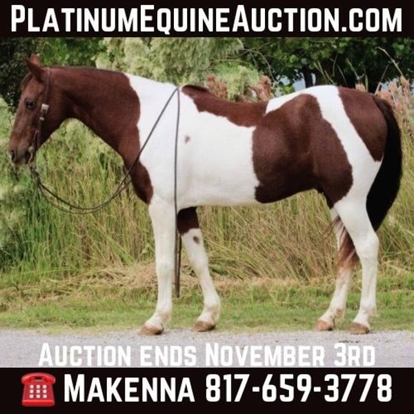 ONLINE AUCTION Place your bids at www.PlatinumEquineAuction.com Starting Bid $3500 Auction ends November 3rd, 2024 Need a new saddle? Check out White Rock Saddles on our website or Facebook! If you’re looking for your next astonishing kids pony, you’ve come to the right place! Meet Scooter! Scooter is the pony of all children’s dreams! He is sure to wow everyone he comes in contact with. Scoot has been with our family for the past 4 years and we are forever greatful for all the experience! Scoot Scoot is a 11 year old pony . He stands at the adorable height of 13.1 hands. He has a calm and great demeanor, with the looks to back it up! Scoot is finished on the barrels and poles, with no alley issues at all! He also goes over jumps and rides English! This guy is the best addition to any family home. He has been used for just about anything you could think of from jumping to running barrels and more! Scoot I s extremely gentle, and is truly a “unicorn.” He is an absolute angel on any trail you may take him on. He will gladly walk through or over fallen branches, ditches, water, and even climb stairs. Scoot will willing comply with going anywhere you point her nose. He is completely safe to ride out alone on or with a group of other horses. Don’t let his size fool you, his heart is as big as them come! He is determined to please any child that swings a leg over on him and ensure the safety of his rider at all times to ease a parents mind! Scooter is super easy to catch, and greets you anytime he sees you coming (don’t forget the cookies)! He is good turned out with other horses or livestock as well. You can put shoes on him or leave him barefoot, the preference is up to you. Don’t miss out on this once in a lifetime pony lover opportunity! We absolutely encourage any one to come try and see how great he is for yourselves but we are also able to arrange shipping anywhere from Hawaii to Canada and any state in the U.S. He is located in Stephenville, TX. Please Call or text Makenna Hartzel 817-659-3778 for more information. ONLINE AUCTION Place your bids at www.PlatinumEquineAuction.com Starting Bid $3500 Auction ends November 3rd, 2024 Need a new saddle? Check out White Rock Saddles on our website or Facebook!