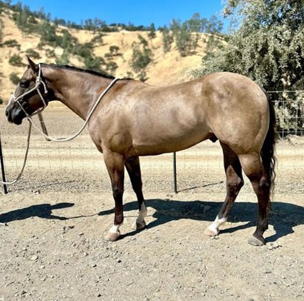 ONLINE AUCTION Place your bids at www.PlatinumEquineAuction.com Starting Bid $3500 Auction ends October 20th, 2024 Need a new saddle? Check out White Rock Saddles on our website or Facebook! This handsome boy is a 10 year old grulla gelding. Smokey stands just at 15 hands. Smokey is a horse that loves to go out on great long adventure he’s been trail ridden most his life, and isn’t phased by much of anything! Smokey will ride down some of the busiest, nosiest highways with cars and trucks streaming by him and not have a care in the world. Smokey has been rode through the water canals and enjoys crossing through all depths of water. Smokey has been rode through thick orchards all through the Central Valley, their heavy machinery doesn’t phase him one bit. In the arena, he picks up both his leads smoothly and has a light feel in the bridle. He has smooth gaits and is nicely paced. He is in the process of learning more reining maneuvers and is taking to them nicely ! Smokey is absolutely gentle and easy to get along with for most any level. Smokey is great for the farrier, he will stand quietly in cross ties. You can clip Smokey effortlessly and get all underneath him scrubbing while bathing him. Smokey will load in any trailer and stand tied all day. Call Kevin Allen 858-395-7742 with any questions. Located in Ramona, CA. ONLINE AUCTION Place your bids at www.PlatinumEquineAuction.com Starting Bid $3500 Auction ends October 20th, 2024 Need a new saddle? Check out White Rock Saddles on our website or Facebook!
