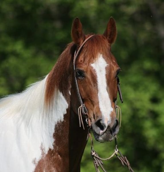 ONLINE AUCTION Place your bids at www.PlatinumEquineAuction.com Starting Bid $3500 Auction ends October 27th, 2024 Need a new saddle? Check out White Rock Saddles on our website or Facebook! Benny is a stout built 15.1H, 11 year old, Sorrel Tobiano Paint Quarter Horse Gelding. Benny is a well traveled horse that has been ridden in several states and has been used as a ranch horse in every aspect of ranch life. He has been grandma’s trail horse and plodded along down the trails. He has herded sorted, pasture roped and doctored, Benny has done it all! He has been trail ridden in several states and used at the stockyards to pen cattle on a few occassions. He will cross creeks, ditches, logs and navigate rough rocky areas. Benny is safe riding in traffic. He has a smooth jog and a good lope! Benny has been exposed to all kinds of wildlife such as deer or turkey or other animals like cows or dogs and will go anywhere that he is asked too. He has been rode many miles in the mountains of Eastern Kentucky and encountered every obstacle possible on the trail. He will go up or down even the steepest slopes, across deep creeks, over downed trees, and over all types of rough terrain while still being sure footed. If you want to feel and look like a real deal cowboy/cowgirl just climb on Benny and he will make you look like one! If you have any questions call Moore Trained Horses Logan 765-265-0033. Located in Level Green, KY. ONLINE AUCTION Place your bids at www.PlatinumEquineAuction.com Starting Bid $3500 Auction ends October 27th, 2024 Need a new saddle? Check out White Rock Saddles on our website or Facebook!